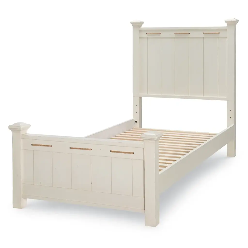 This bedroom collection offers updated traditional designs with beautiful finishes that really do capture the tone of a lake house or cabin. Beds come in multiple styles and sizes so you can easily furnish any size youth or guest bedroom. Custom designed boat cleat and navigational themed knobs in a brushed nickel finish adds to the personality of this group. Pieces are offered in a Cabin Brown or Pebble White distressed finish, with select accent items offered in a Denim Blue. Multiple sleep, study and storage options can be found throughtout all pieces along with modern day functions. Create a perfect retreat and feel right at home.