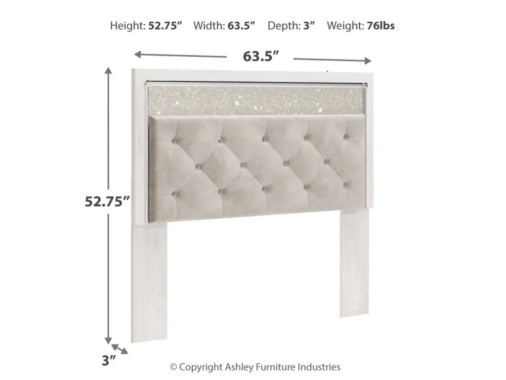The epitome of fashion-forward design, the Altyra queen upholstered panel headboard is a beautiful blend of comfort and luxury. Shiny chrome-tone accents, a pearlized finish and button-tufted upholstery bring a glam touch to the richly rustic appearance. Remote-controlled LED lighting adds style and modern conveniences to your restful retreat.