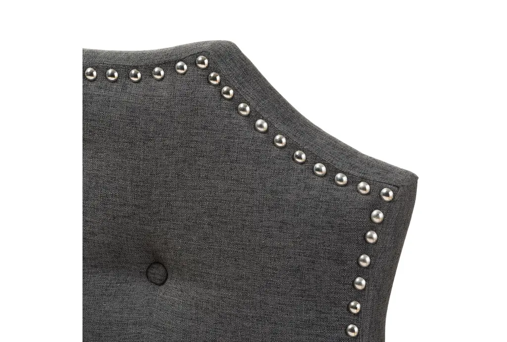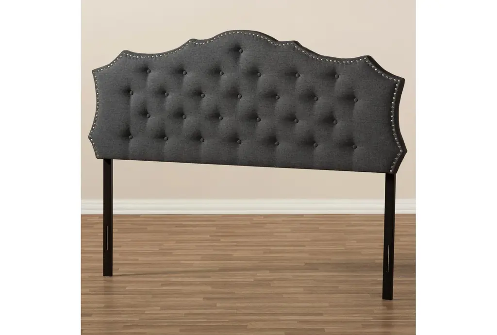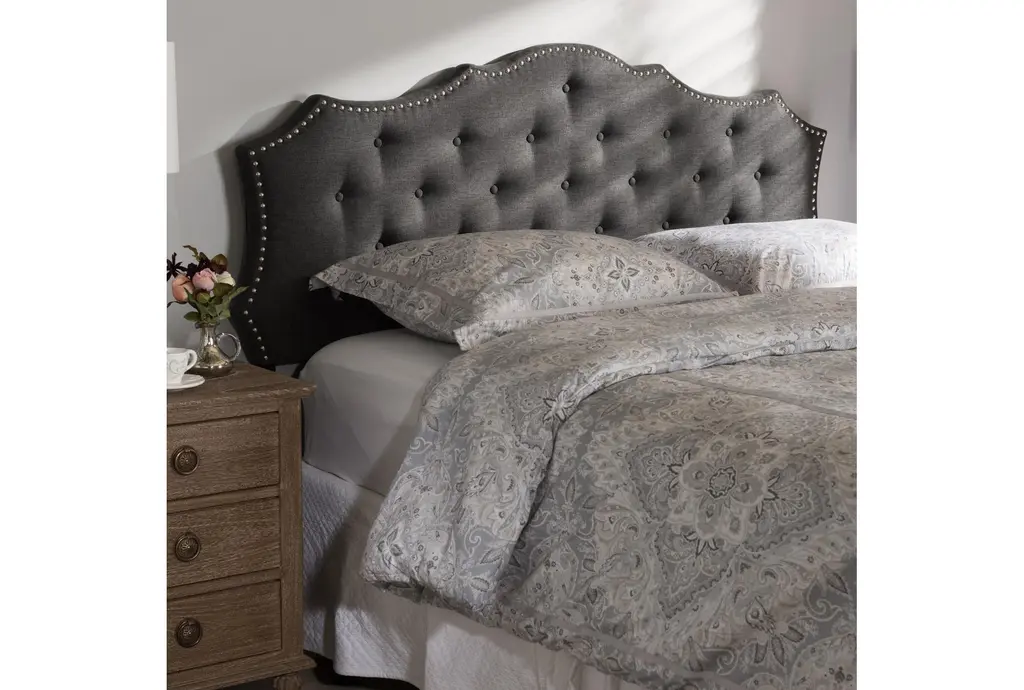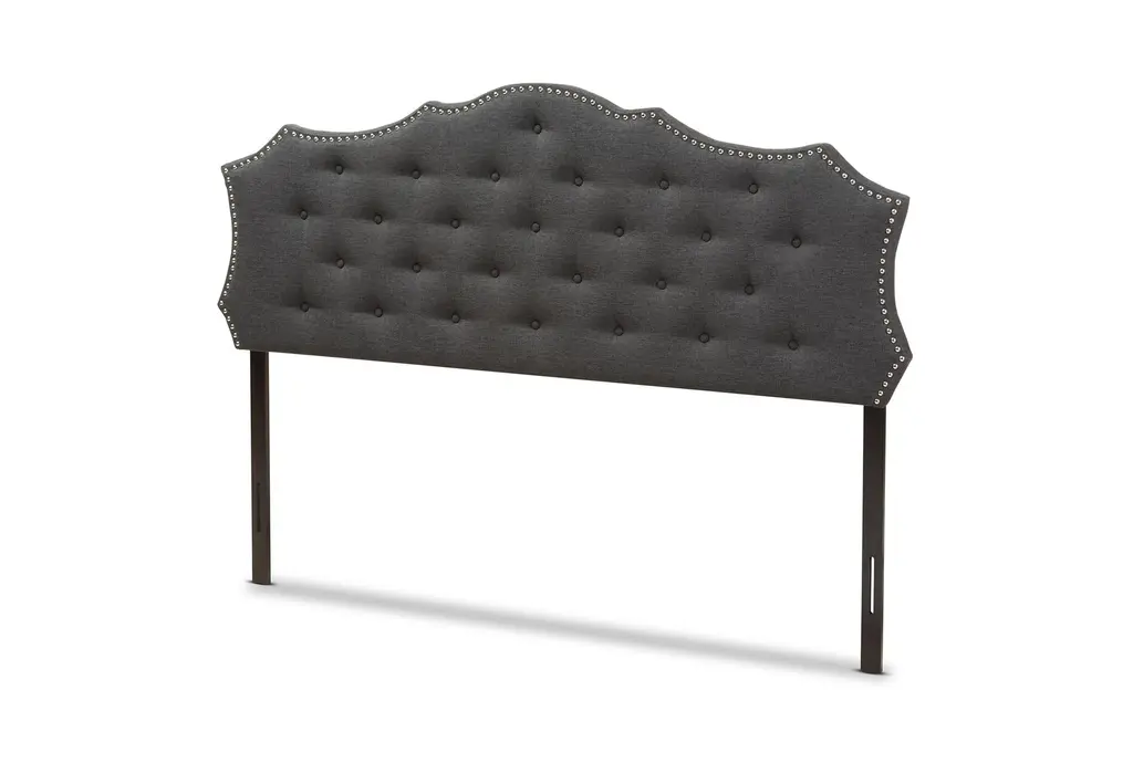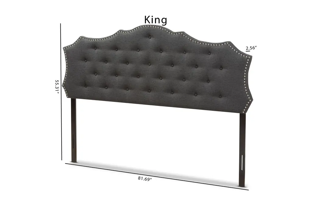 The Alyssah King Dark Grey Natural Fabric Headboard brings a touch of glam to your bedroom. Its tufted design and scalloped shape create a timeless look that complements any sleeping space. Upholstered in dark grey fabric, this headboard offers both style and comfort.