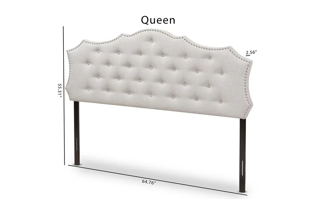 The Alyssah Queen Greyish Beige Fabric Headboard adds a touch of glamour to your bedroom. Its tufted design and soft greyish beige fabric create a sophisticated focal point, perfect for elevating your sleep space. Enjoy the comfort and style that this headboard brings to your home.