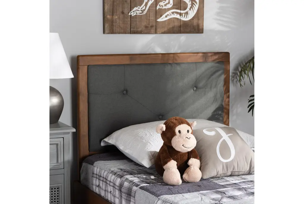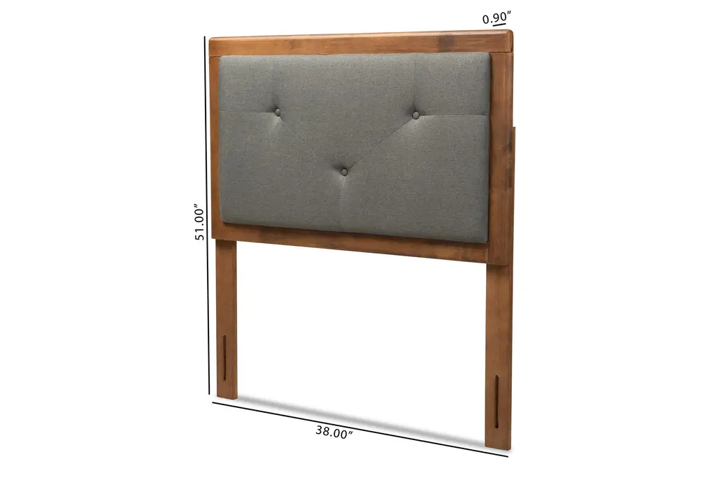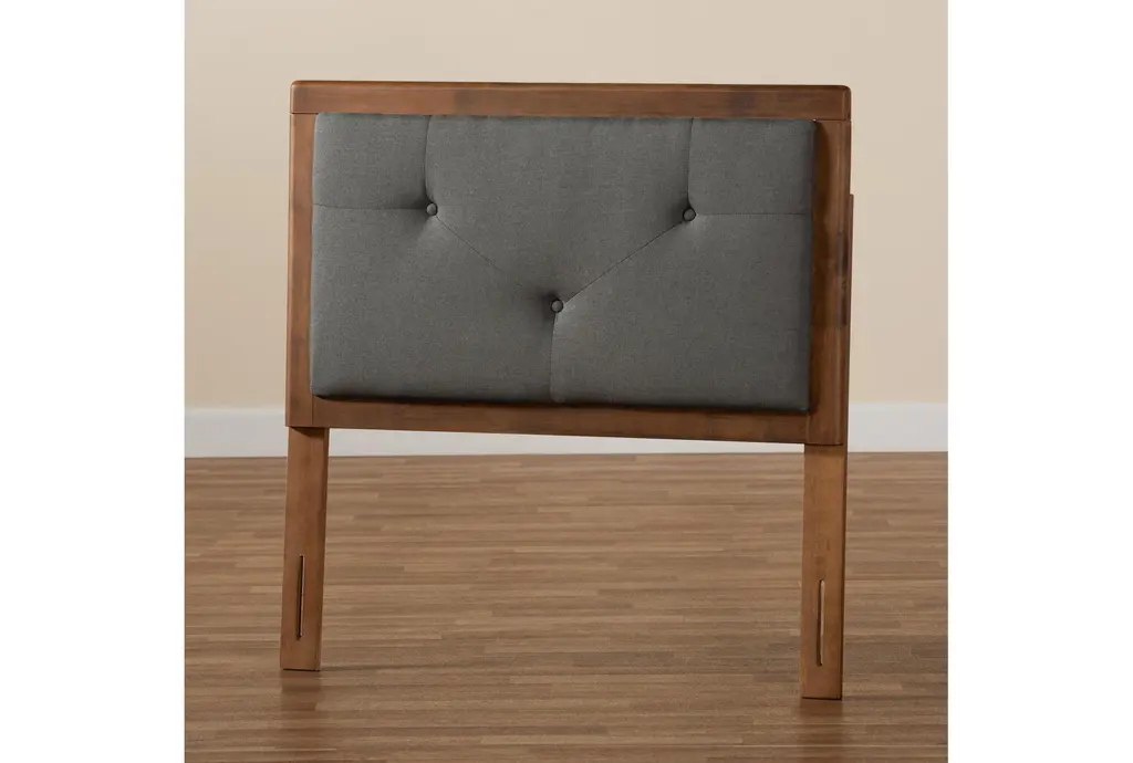 Alyvia Twin Dark Grey Natural Fabric Upholstered And Walnut Brown Finish Wood Headboard