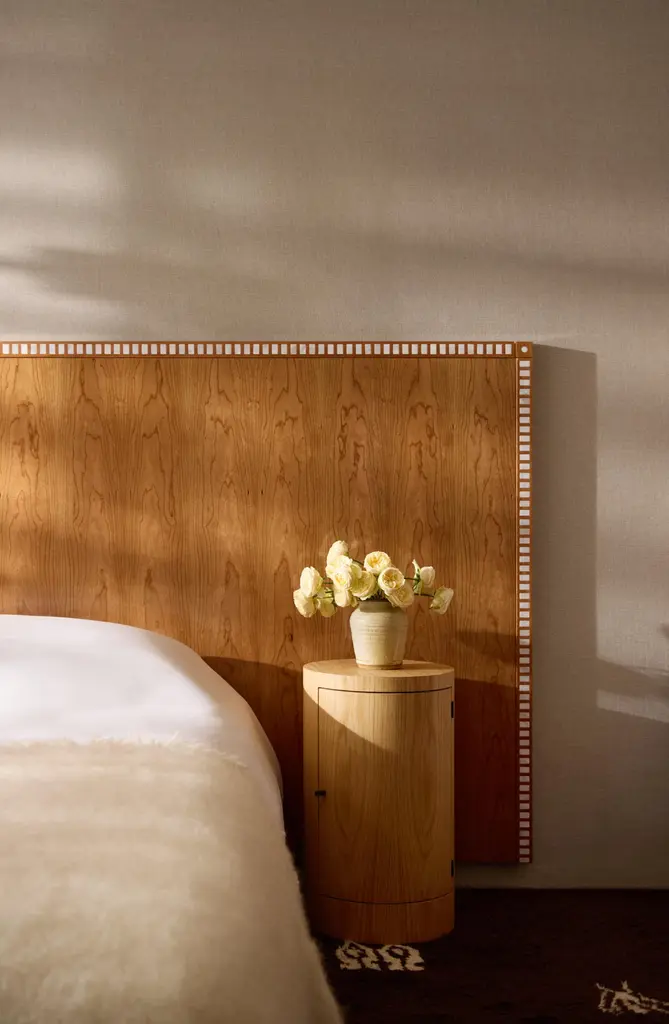 The name Aquarama is derived from the iconic speedboat design by Riva in 1962, first test-driven by Gianni Agnelli. The boat features lacquered timber with contrasting cream detailing and an aesthetic that encapsulates the glamour of being on Italy’s oceans, lakes, and water- ways. The piece is an endeavour to reintroduce bygone luxury materials into daily domestic life. The headboard features decorative mother-of-pearl inlays and is available in a variety of lacquered timbers. Each piece is made by handDesigned by Yaniv Chen for Lemon
