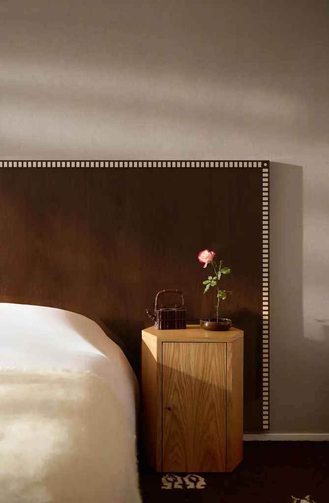 The name Aquarama is derived from the iconic speedboat design by Riva in 1962, first test-driven by Gianni Agnelli. The boat features lacquered timber with contrasting cream detailing and an aesthetic that encapsulates the glamour of being on Italy’s oceans, lakes, and water- ways. The piece is an endeavour to reintroduce bygone luxury materials into daily domestic life. The headboard features decorative mother-of-pearl inlays and is available in a variety of lacquered timbers. Each piece is made by handDesigned by Yaniv Chen for Lemon