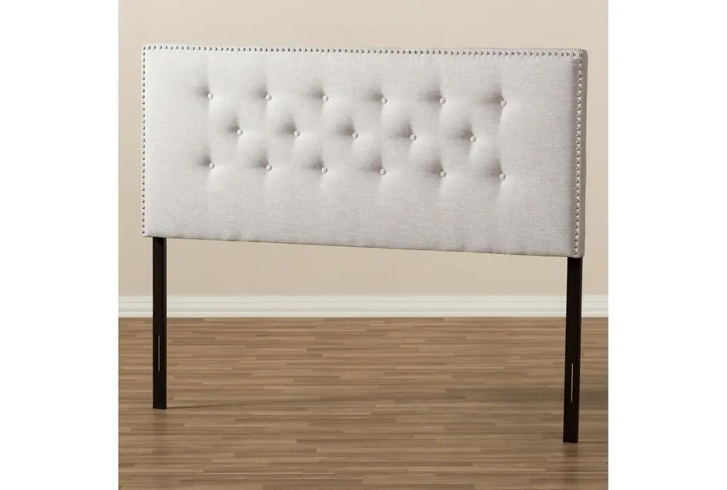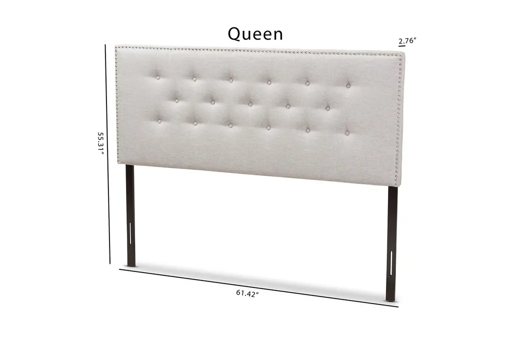 Aralynn Queen Greyish Beige Natural Fabric Upholstered Headboard