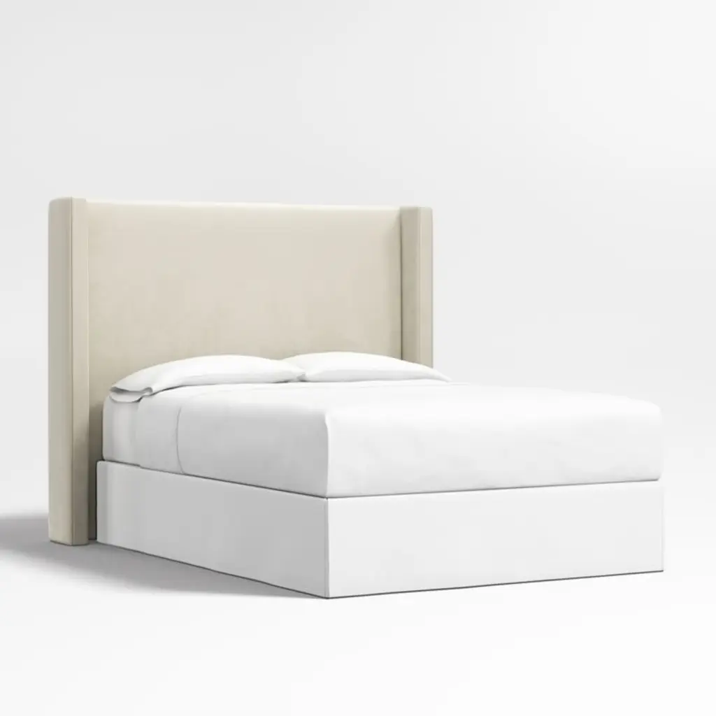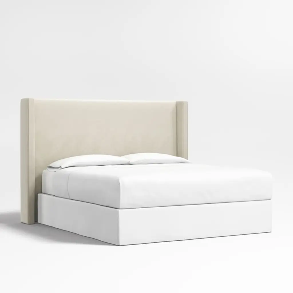 Our custom bed collection lets you mix and match our top-selling headboards and bases for a look that's truly yours. Our tall shelter headboard rises high to surround you with its wingback contours upholstered in faux mohair in versatile beige. Our Arden upholstered headboard is designed to fit perfectly with any of our bed bases.By choosing FSC ®-certified furniture, you are supporting responsible management of the world's forests.