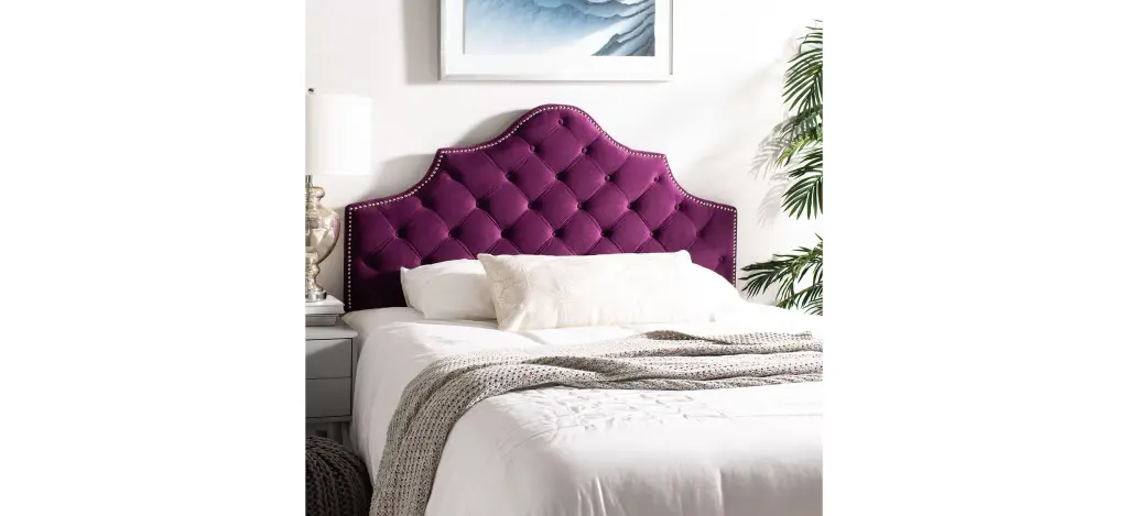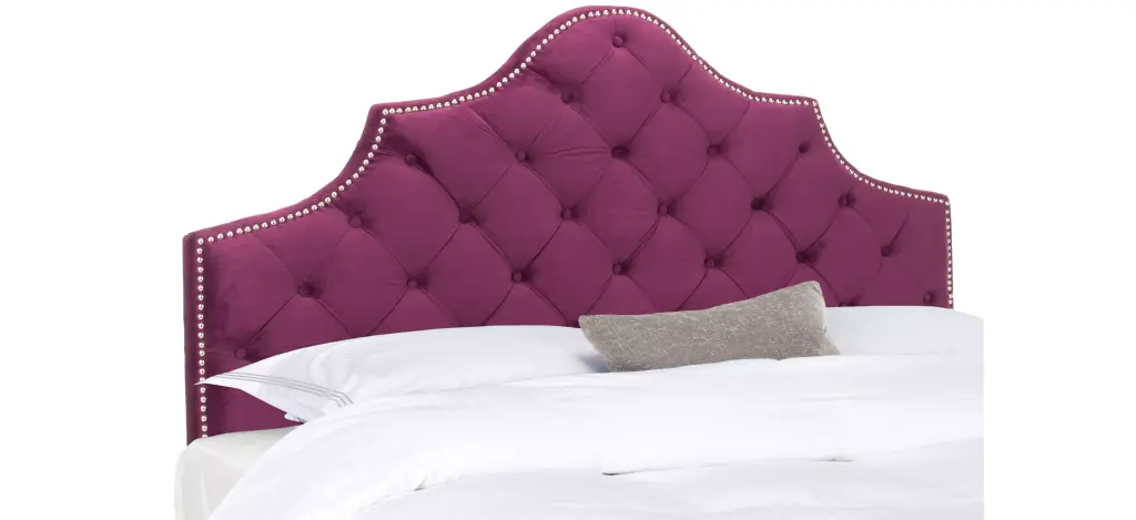 Furnishings that outfit the hotel suite that's a second home to the residents of Buckingham Palace inspired this tufted velvet Arebelle Full Upholstered Headboard. Designed for the boudoir of the modern princess, its aubergine upholstery is adorned with polished nailhead detail.