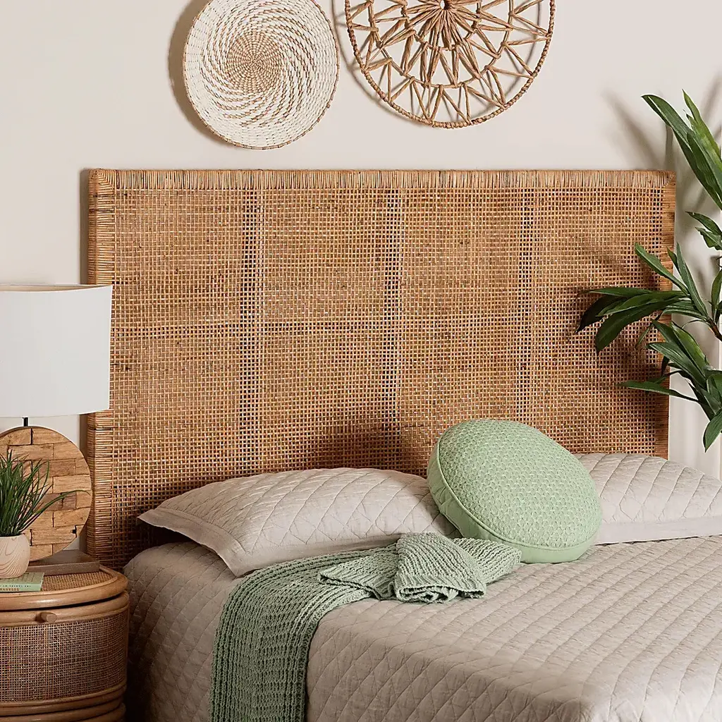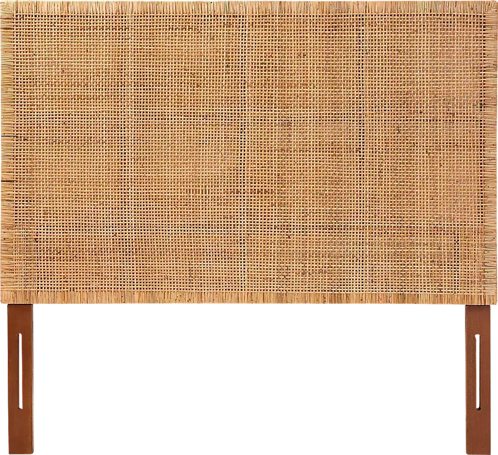 Fashion a cherished arrangement in your bedroom with the delightful Arecay brown queen headboard. This bohemian piece consists of a solid mahogany wood frame wrapped in natural rattan. Its broad panel serves as a fantastic backrest when sitting up in bed while the woven rattan highlights the intricate craftsmanship of the piece. The Arecay is compatible with standard bed frames. Rattan is a product of nature and may have variations in areas such as, but not limited to, color, pattern, grain and texture. The hair-like strands of rattan/rattan-fiber are common due to the nature of the material. Customer assembly is required.
