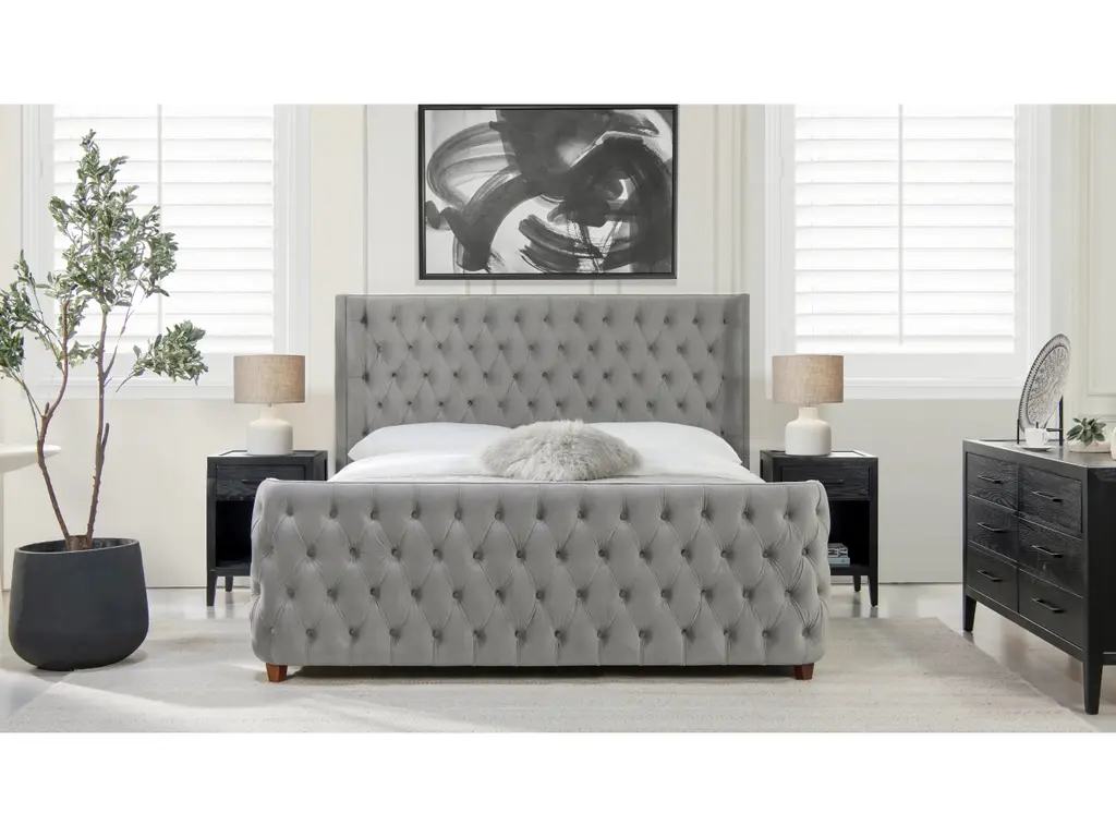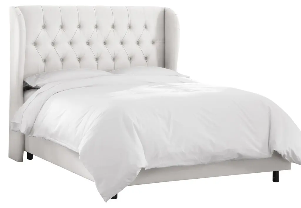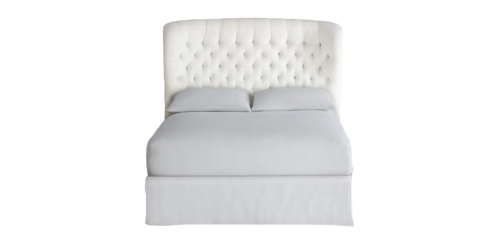 This superbly designed Argona Headboard has a unique shape and is fully upholstered. Outfit your leisure area with a classic look that is always in style. Magnificent diamond tufting sets off the silhouette and makes a truly grand statement. Made to order, the piece is manufactured in Illinois and hand upholstered in a high quality classic fabric, adding an element of richness to the overall design. The headboard connects effortlessly to any standard bed frame for easy assembly.