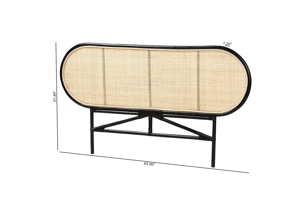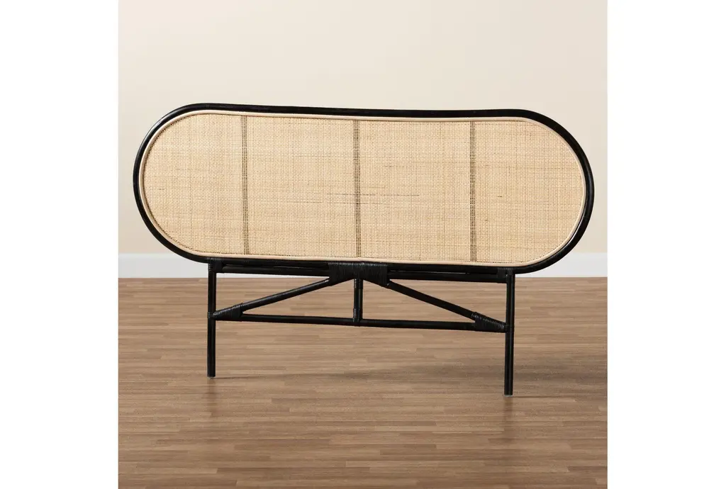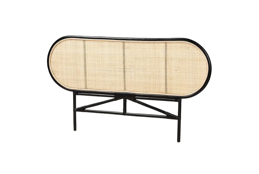 Averleigh Queen Bohemian Two Tone Black And Natural Brown Wood Rattan Standalone Headboard | Woven