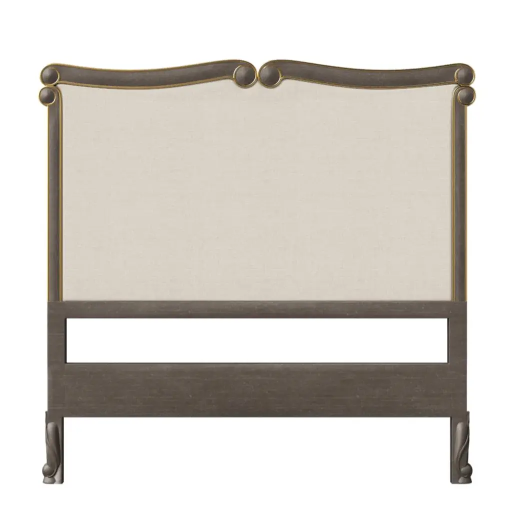 This stunning wood + fabric upholstered headboard is definitely a way to make a statement. Featuring a unique carved wood detail and available in multiple finishes.