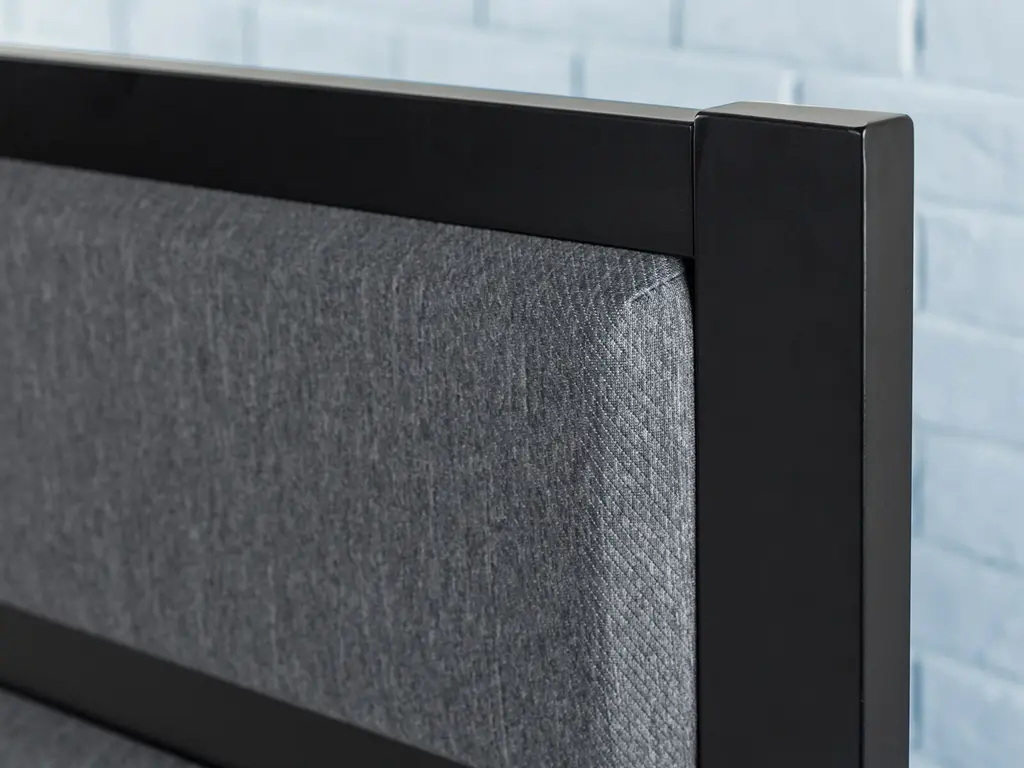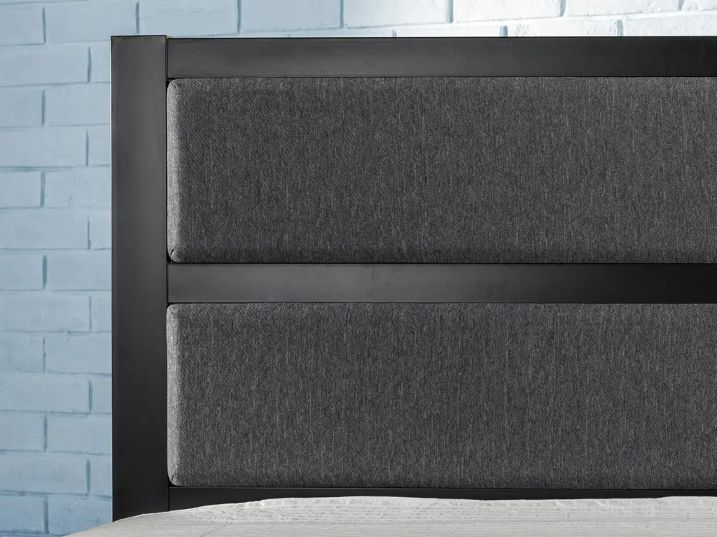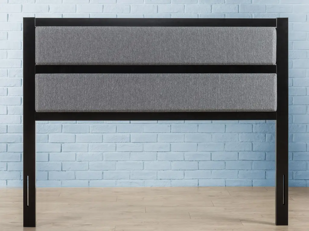 Trying to dress up your existing bed frame? The Sleepy's Modern Metal Upholstered Headboard is designed to do just that. With a clean, modern look that will put your bedroom’s aesthetic right on trend, this grey and black headboard features a thick steel frame enhanced with foam padded upholstery so you can sit up comfortably in bed. Attach it to your existing frame using the predrilled holes in the legs. And putting it together is no sweat, since we package it up into one box with all the tools and easy-to-follow instructions you’ll need. The Modern Metal Upholstered Headboard lets you effortlessly add a dose of comfort and style to your existing bed frame in no time at all.