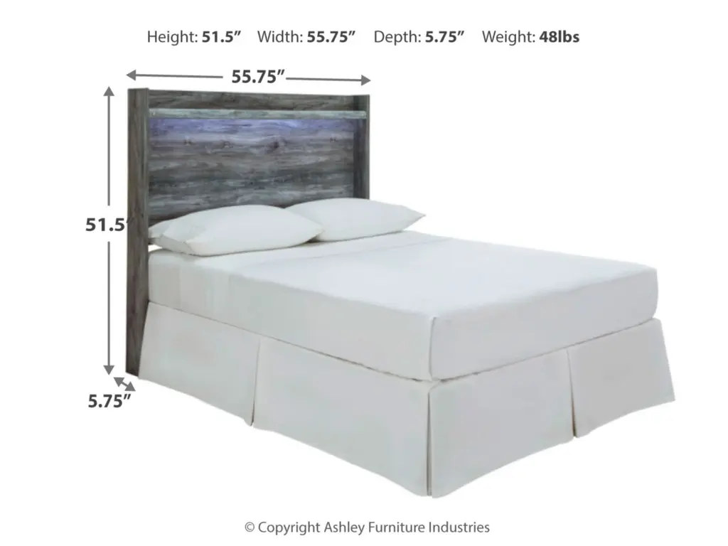 Rest in the beachy style of the Baystorm full panel headboard. Its driftwood and surfer-inspired smoky finish and cool LED lighting give this headboard a rustic look that's perfect for creating an island oasis. Clean lines and modern charm blend for an authentic look to be enjoyed for years to come.