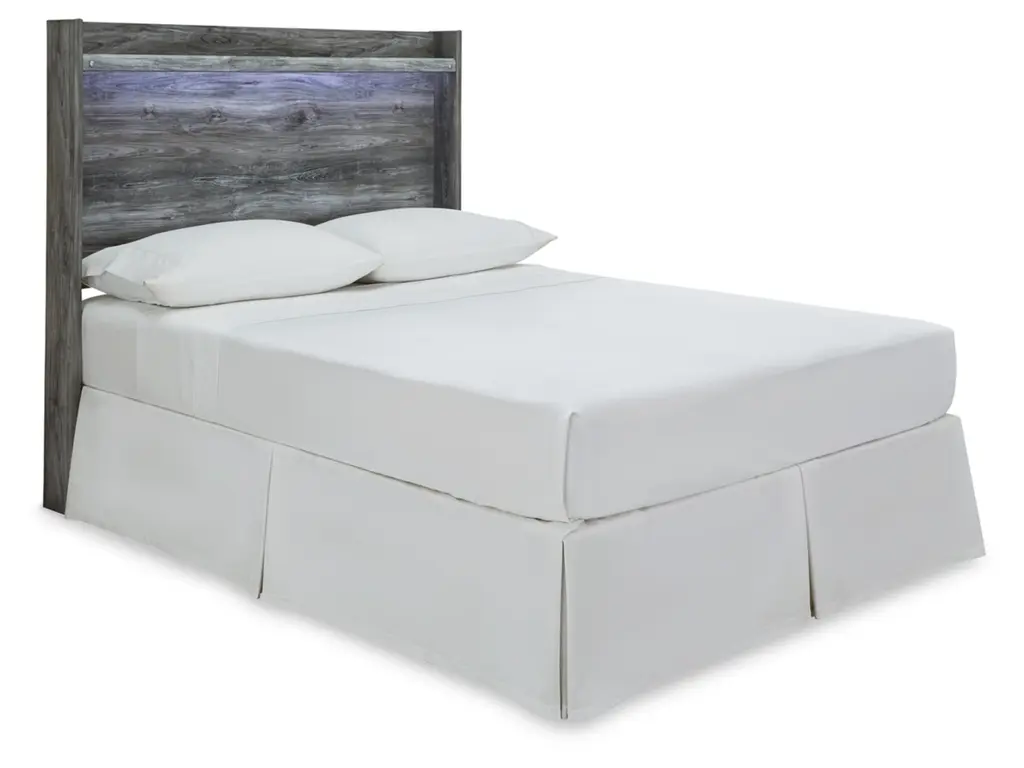 Rest in the beachy style of the Baystorm twin panel headboard. Its driftwood and surfer-inspired smoky finish and cool LED lighting give this headboard a rustic look that's perfect for creating an island oasis. Clean lines and modern charm blend for an authentic look to be enjoyed for years to come.