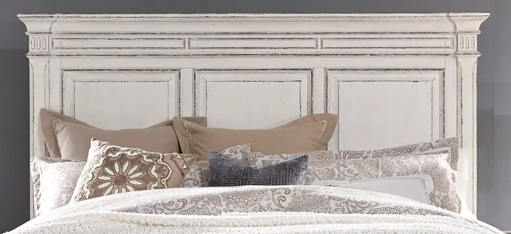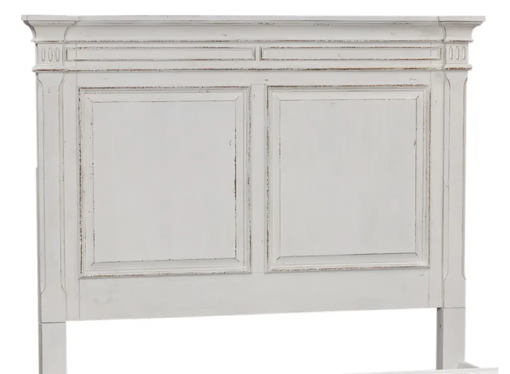 This Birmingham queen panel headboard is the perfect way to complete your room featuring a blend of European Traditional design. This piece is crafted with poplar solids and cathedral white oak veneers. The antique whitewash combined with heavy chipping, creates a truly unique look.