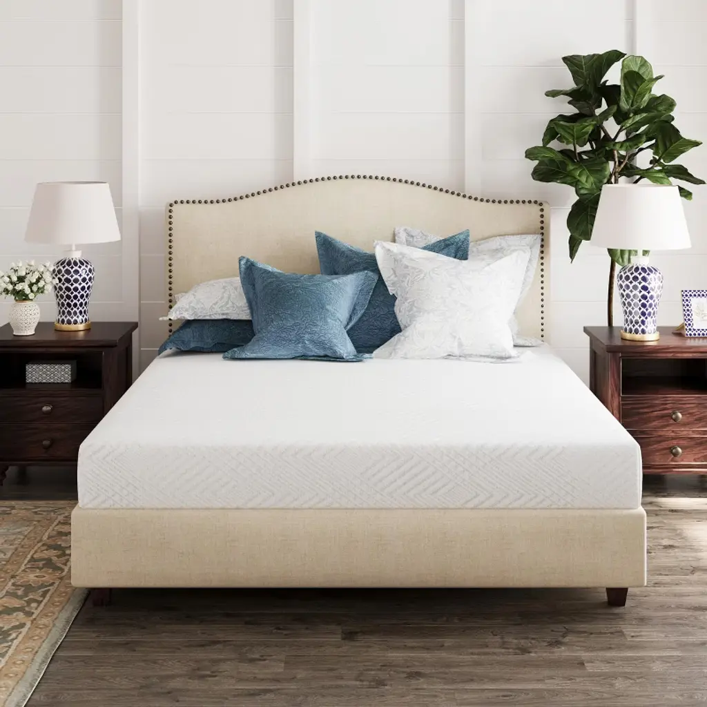 Sweet dreams just got sweeter. Charlie features a textured boucle fabric headboard hung by a sleek metal rail. The brown leather straps allows it to be hung at any height, making this headboard versatile enough for guest rooms, kids rooms, or master suites. Or get creative and hang this King size headboard in your kitchen nook, dining room or entryway!