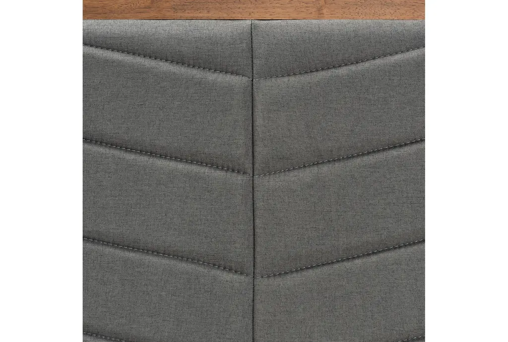 Enhance your bedroom with the Braedyn Queen Dark Grey Fabric Upholstered and Walnut Brown Finish Wood Headboard. This modern headboard features a sophisticated design, combining dark grey fabric with a rich walnut brown finish. The combination of fabric and wood creates a visually appealing focal point for your queen-sized bed.