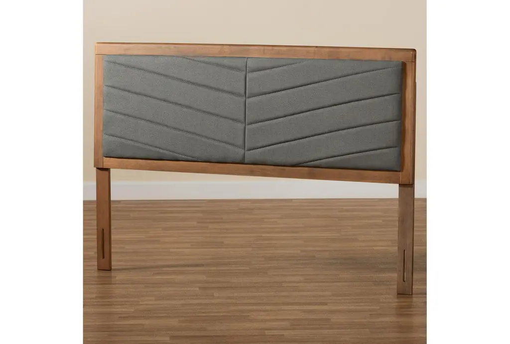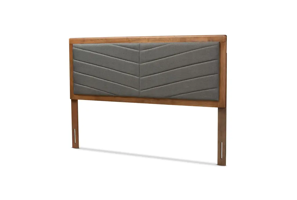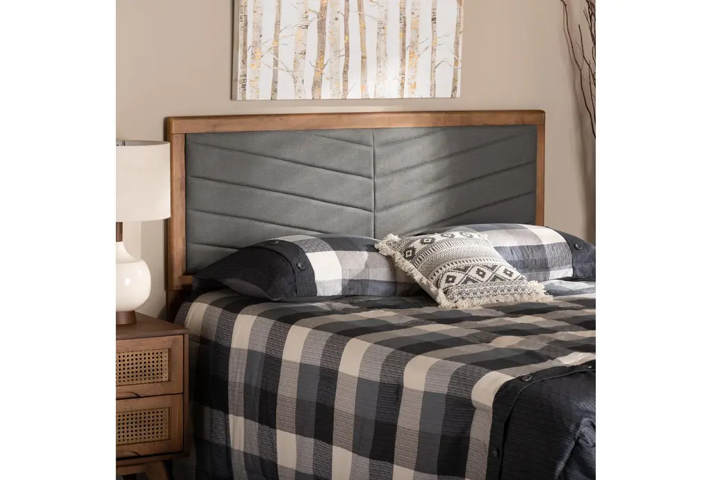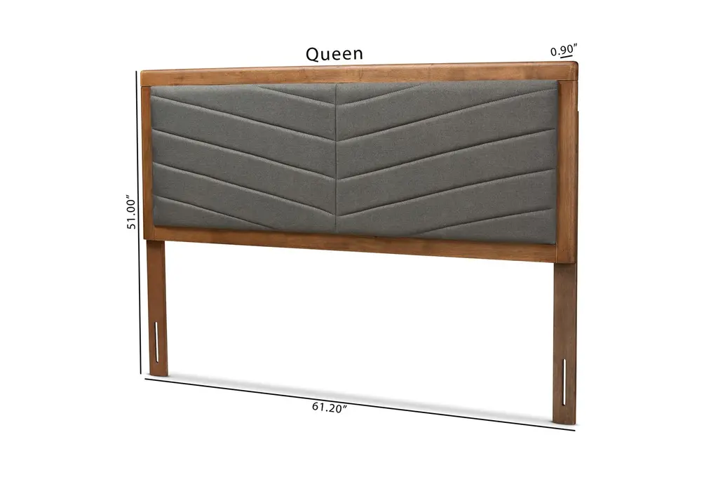 Braedyn Queen Dark Grey Fabric Upholstered And Walnut Brown Finish Wood Headboard