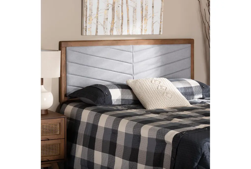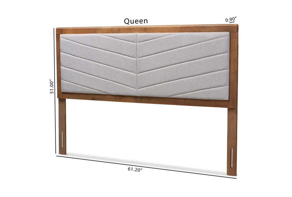 Braedyn Queen Light Grey Natural Fabric Upholstered And Walnut Brown Finish Wood Headboard | Quilted