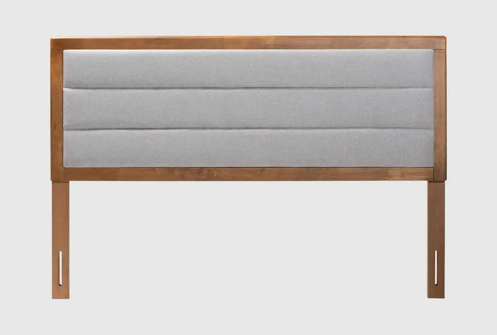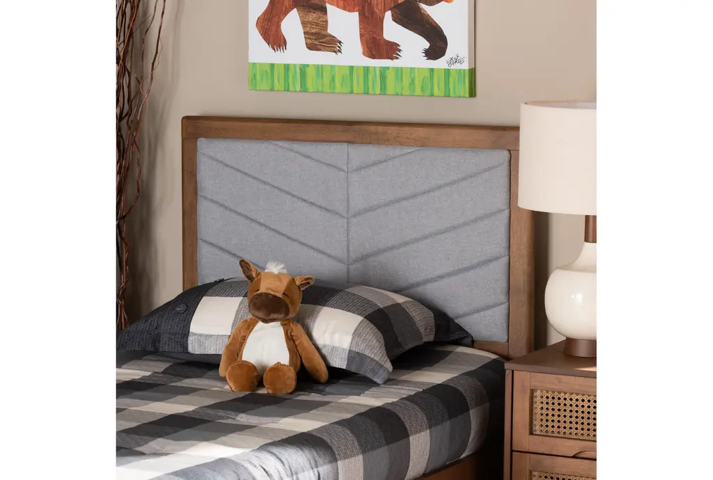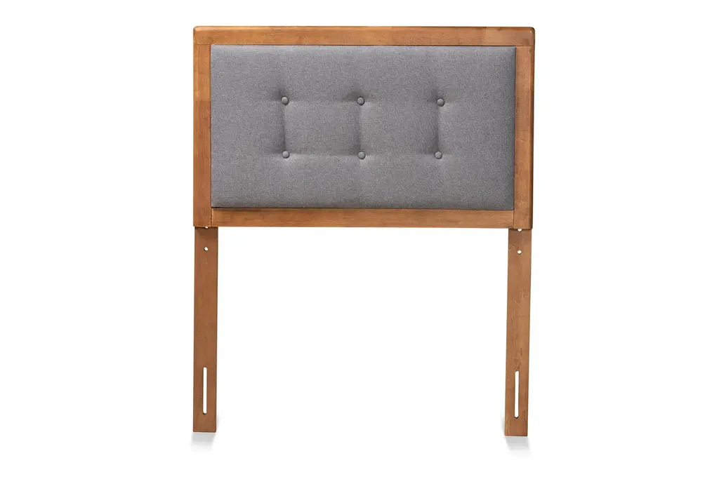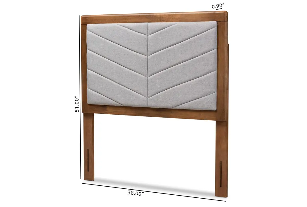 Braedyn Twin Light Grey Upholstered Natural Fabric And Walnut Brown Finish Wood Headboard | Quilted
