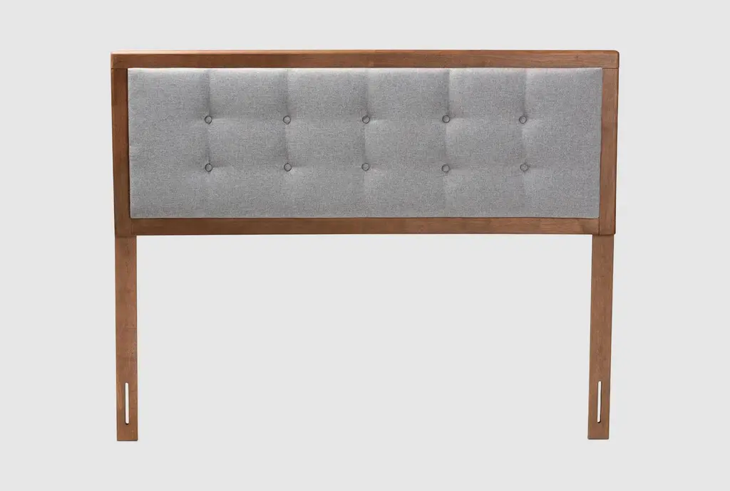 The Braedyn Twin Light Grey Upholstered Natural Fabric and Walnut Brown Finish Wood Headboard is a stylish addition to any bedroom. Its modern design features a quilted pattern that adds a touch of sophistication. The combination of light grey fabric and walnut brown wood creates a neutral yet warm aesthetic, perfect for a variety of decor styles.