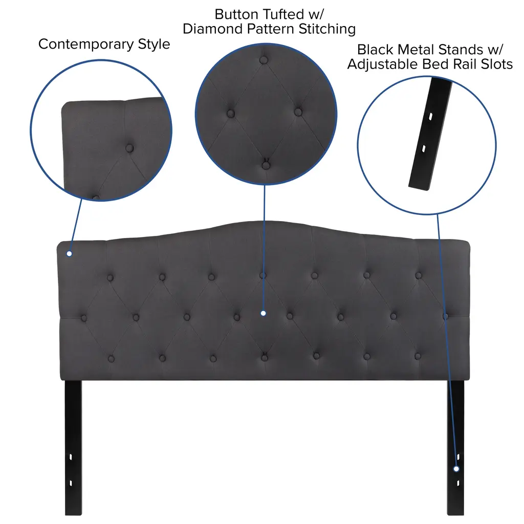 If you like reading or using your tablet or laptop in bed, you need a headboard to provide extra support. A headboard gives your room a very personal touch and allows you to show off your style. This gorgeous headboard features button tufting and a diamond stitch pattern design, upholstery, and includes adjustable metal bed rail slots. The slim panel will make your room feel more spacious. Having just a headboard will provide you with floor space and makes it easy to make up the bed. Whether you're updating your master bedroom, guest room or furnishing your first apartment or home, this headboard will give a fresh, on-trend look to your space.