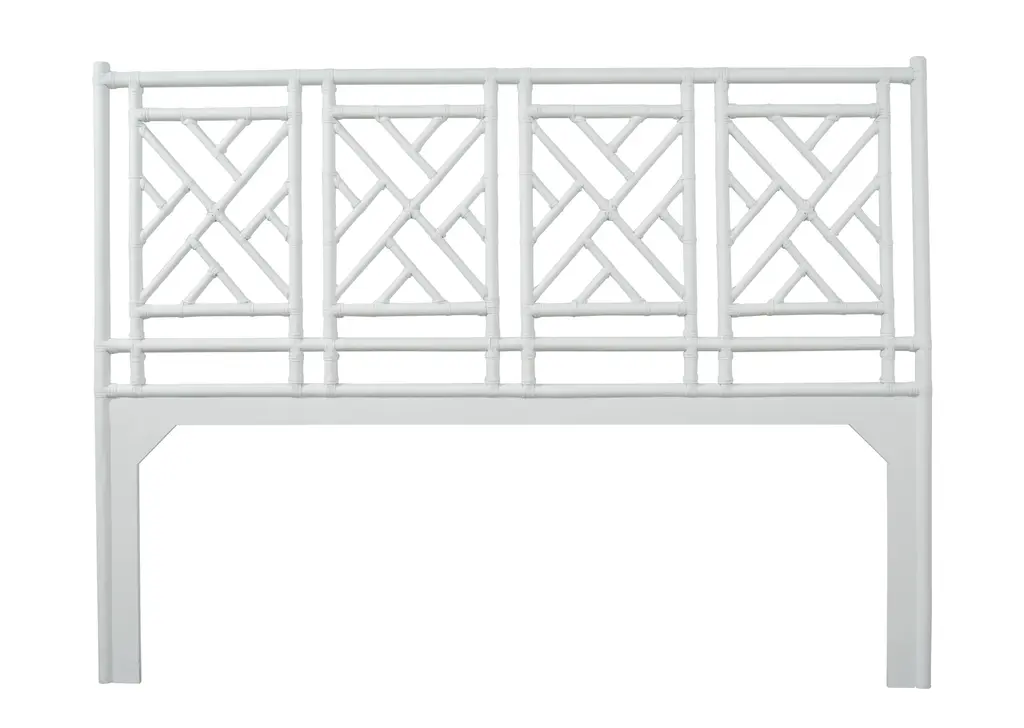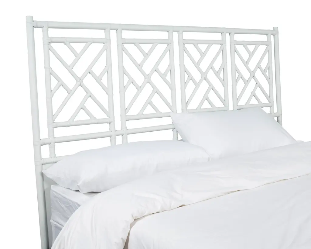 This headboard features classic Rattan design in a geometric pattern. Constructed of solid rattan and hand bound with rawhide bindings. This headboard can be attached to any standard bed frame or hung on the wall. Each headboard is hand finished in the USA and made to order, please allow time for delivery.