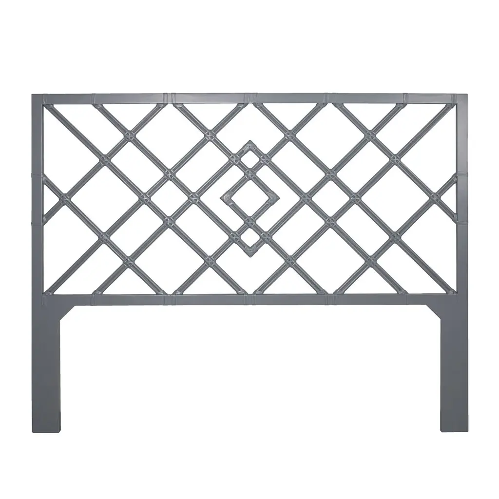 The classic Chippendale design of this headboard will certainly dress up any room. Hand-shaped natural rattan carefully wrapped with leather bindings at every joint makes this Chippendale Headboard a true statement piece. Show off your traditional style with this timeless design that has an imposing presence. This headboard is crafted with eco-friendly and sustainable materials such as rattan, crushed bamboo, and plantation-grown hardwoods. Each headboard is available in many fun colors and is finished to order in the USA.