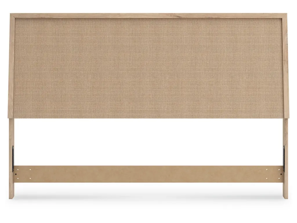 Clean-lined and contemporary—but far from stark—the Cielden king panel headboard is a fresh style awakening. Pairing a light finish with replicated oak grain and a textured beige panel that replicates the look of cane, its mixed materials bring a naturally versatile vibe to your bedroom. Talk about style with added dimension. Its simplicity plays perfectly with the modern aesthetic and is the stuff dreams are made of.