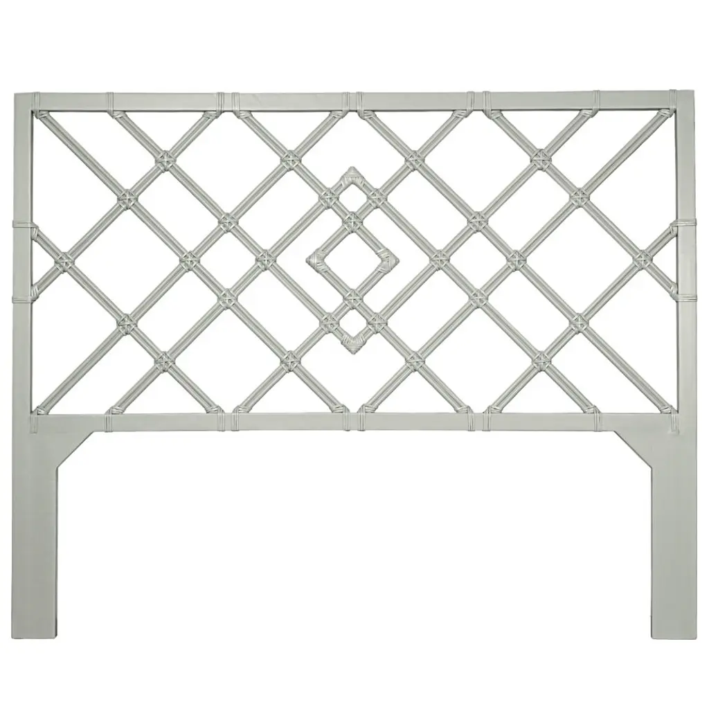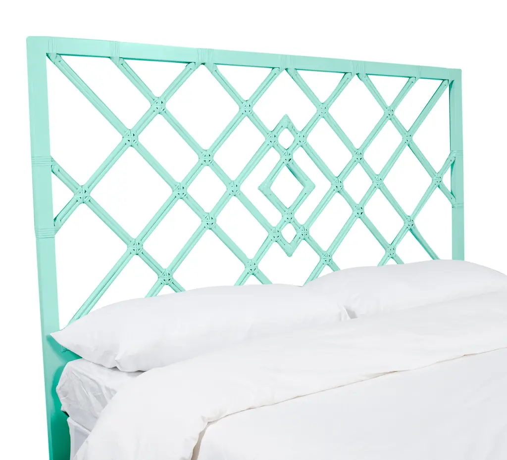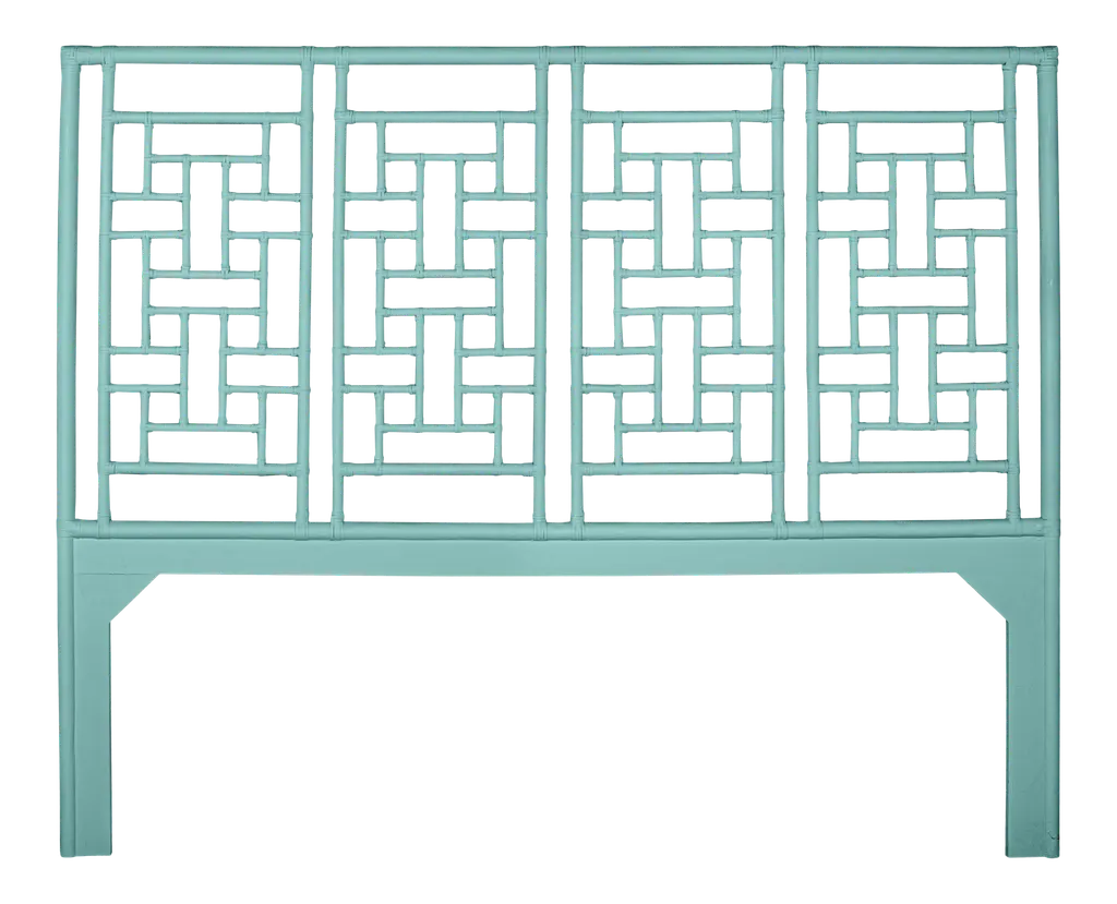 This headboard features classic Rattan design in a geometric pattern. Constructed of solid rattan and hand bound with rawhide bindings. This headboard can be attached to any standard bed frame or hung on the wall. Each headboard is hand finished in the USA and made to order, please allow time for delivery.