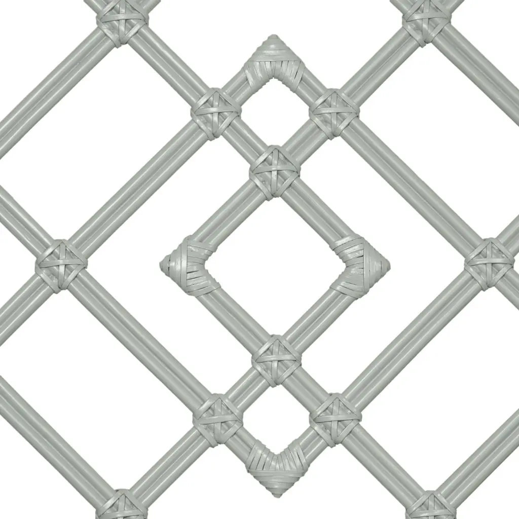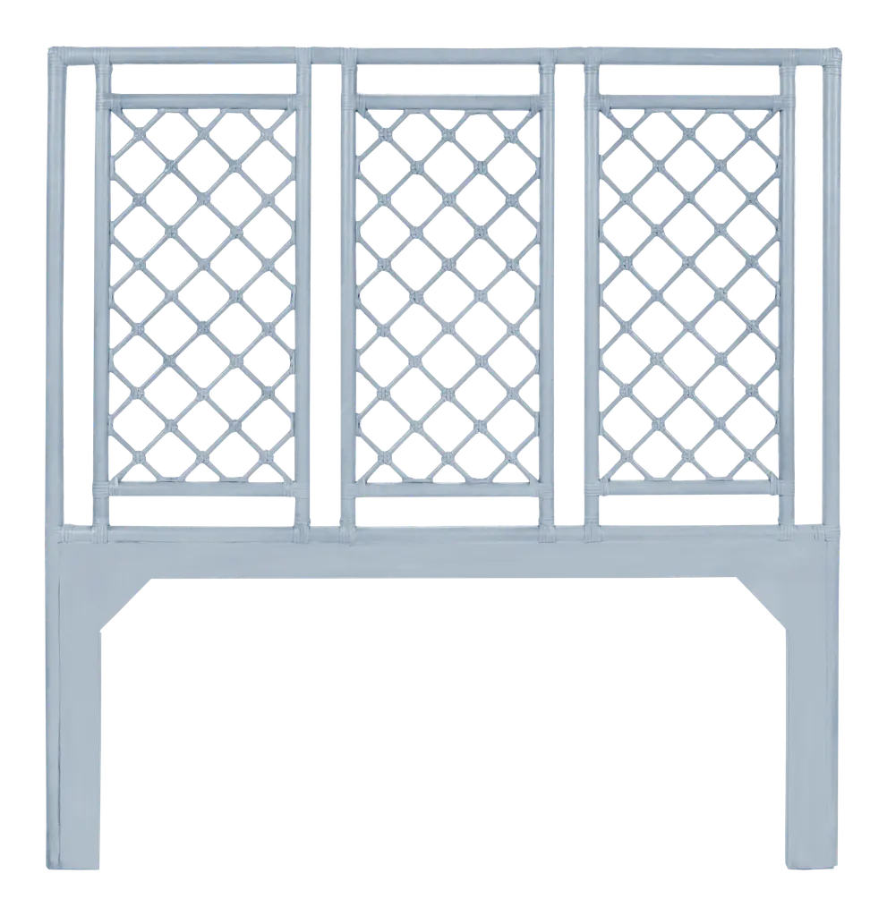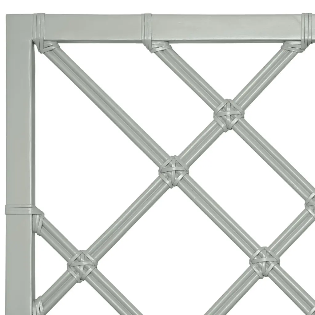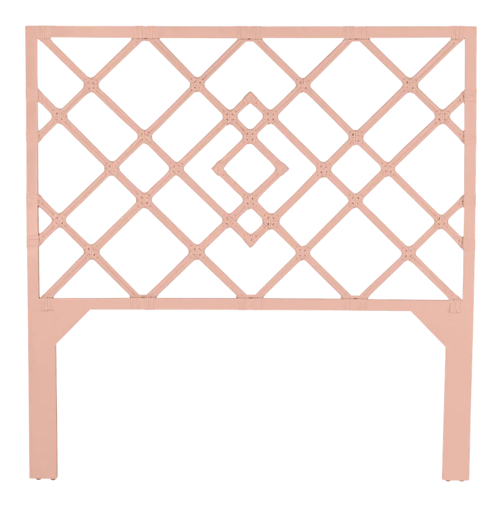 Showcasing spectacular fretwork, this Chinese Chippendale-inspired headboard is crafted of mahogany and rattan and finished with glossy lacquer and rawhide wraps. Attaches to any standard bed frame.