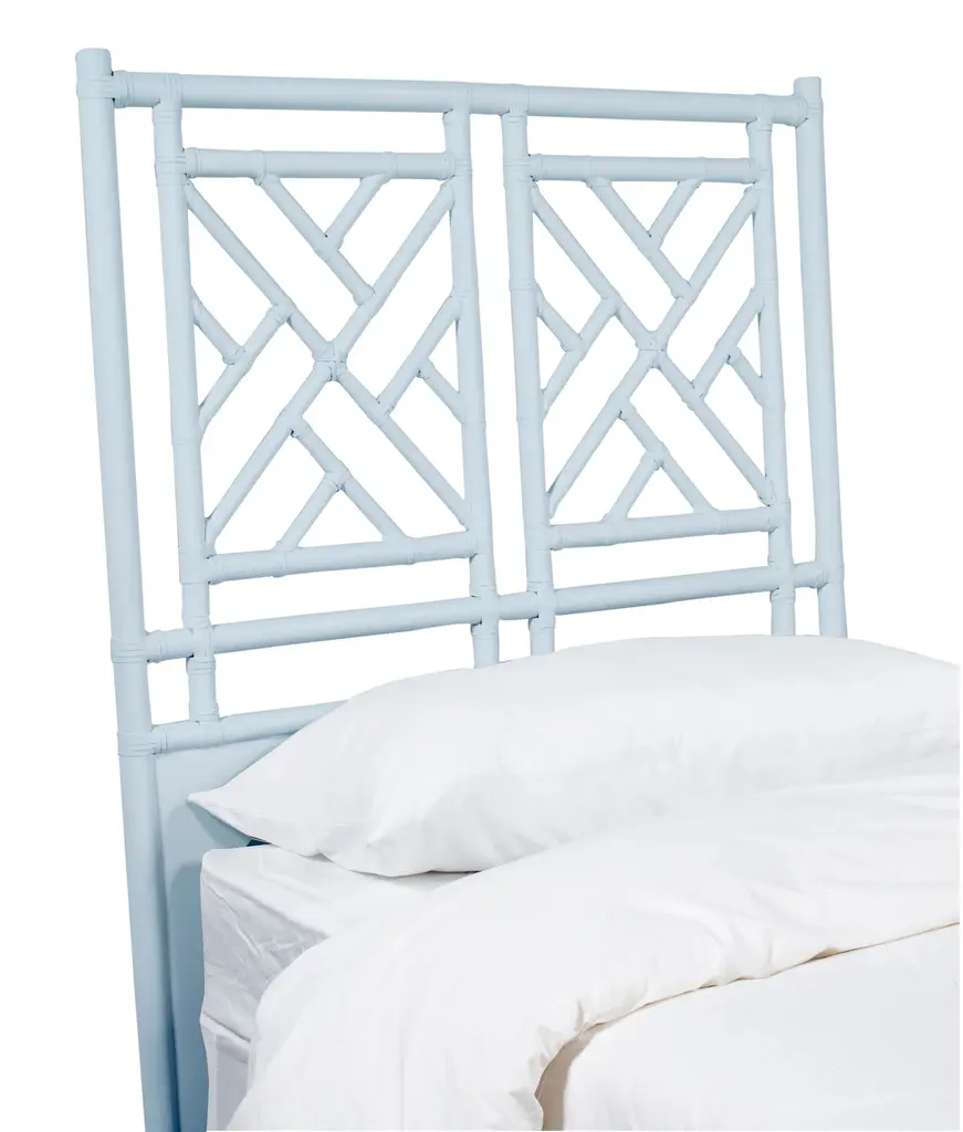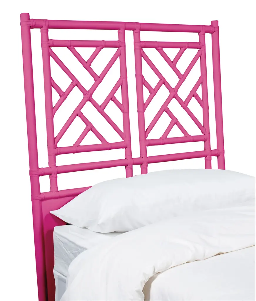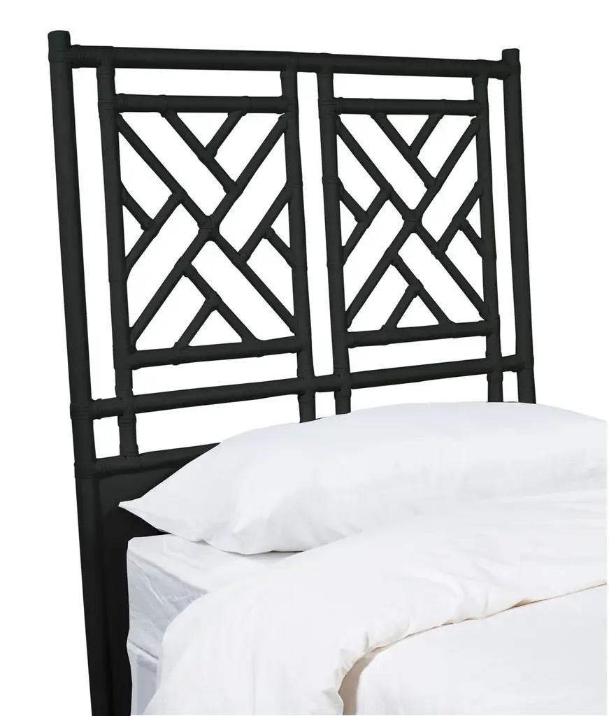 This Rattan headboard designed by David Francis is wrapped with Rawhide Bindings to add beautiful contrast and strength. An artistic centerpiece, this headboard will make a statement in any room. Easily attaches to a bed frame or to the wall. Each headboard is custom made and finished to order by mastercraftsman in the USA! Dimensions: King: W80" x H60" Queen: W63" x H60" Double: W54" x H60" Twin: W42" x H60" Details: Made in USA Rattan construction Rawhide bindings Manufacturer: David Francis Delivery: Please allow 3 weeks for production Shipping: Free shipping in the U.S.