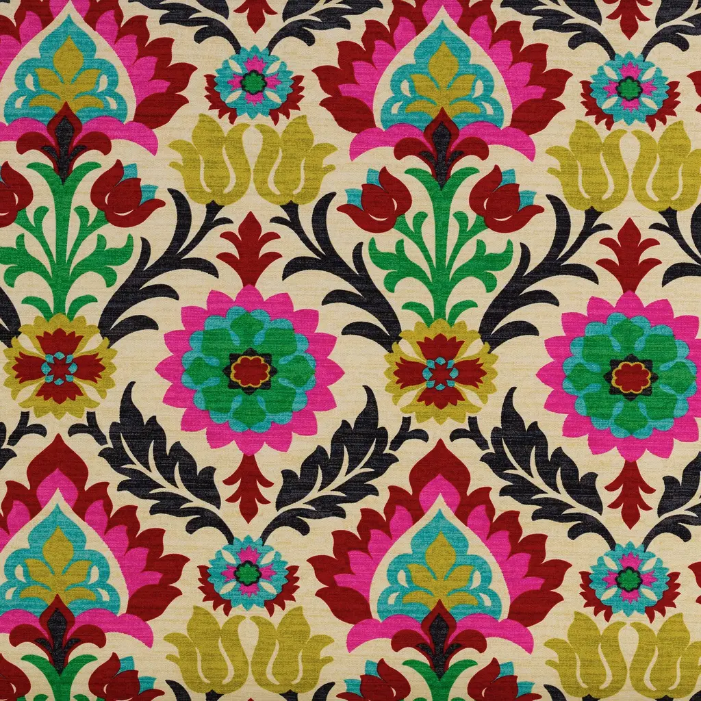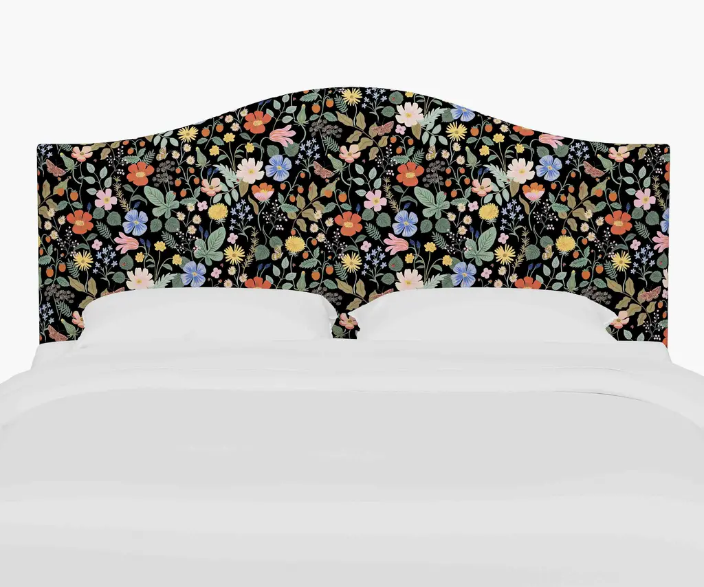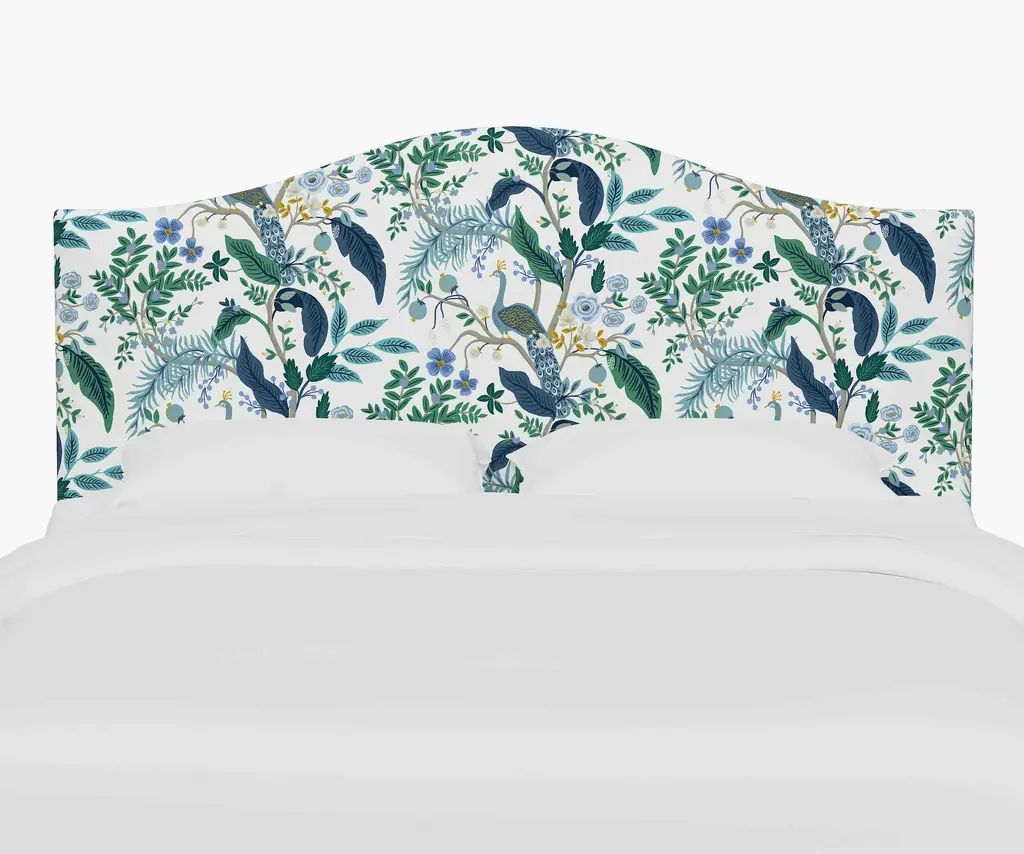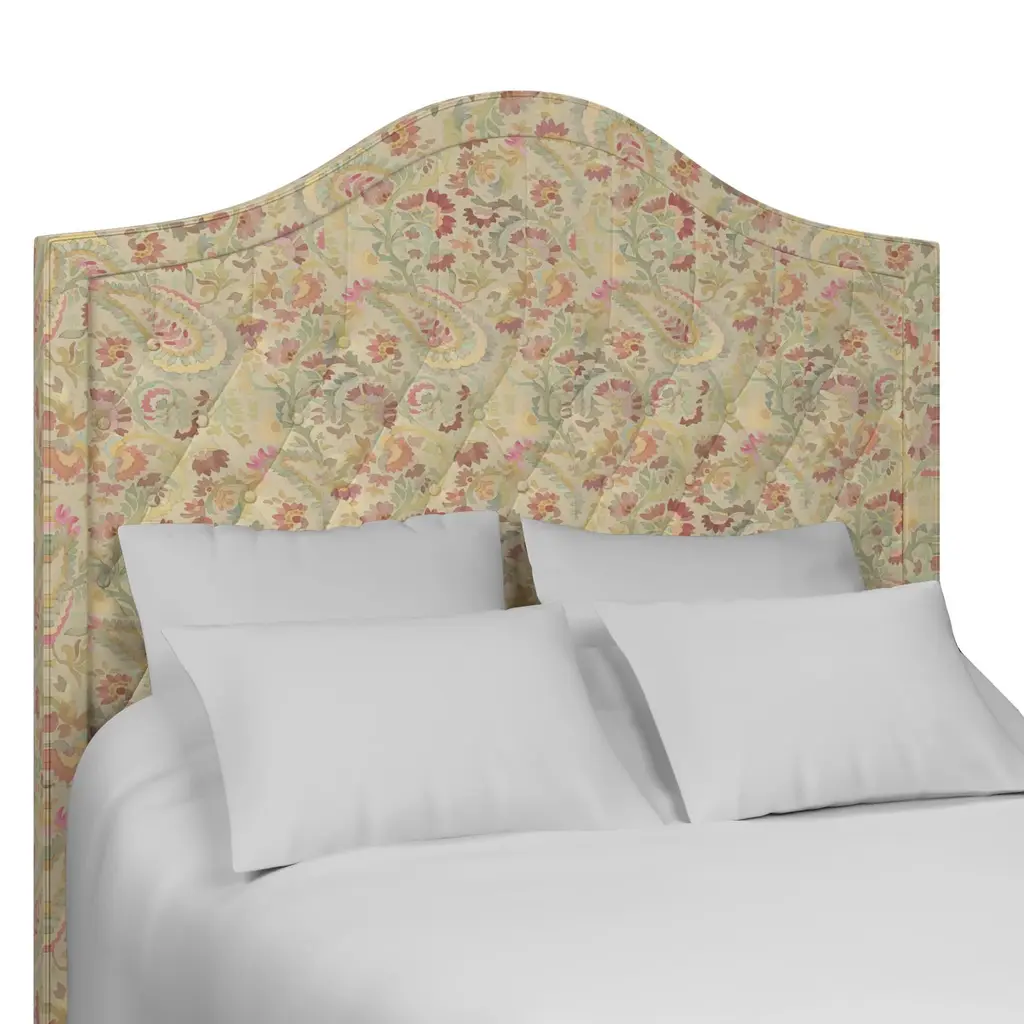 Featuring a bold floral motif with pops of pink, turquoise, green and red on a creamy background, our custom-made headboard is handcrafted with cotton upholstery and sophisticated welt trim. It makes a beautifully vibrant statement as the focal point of your sanctuary.