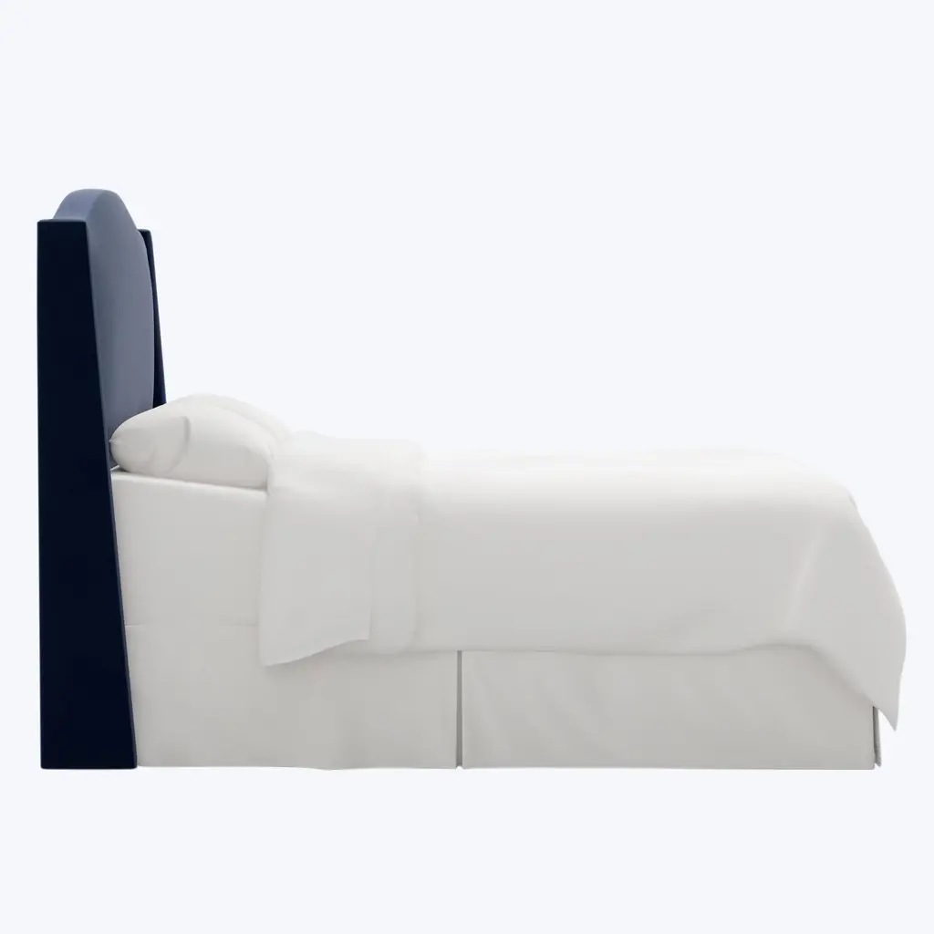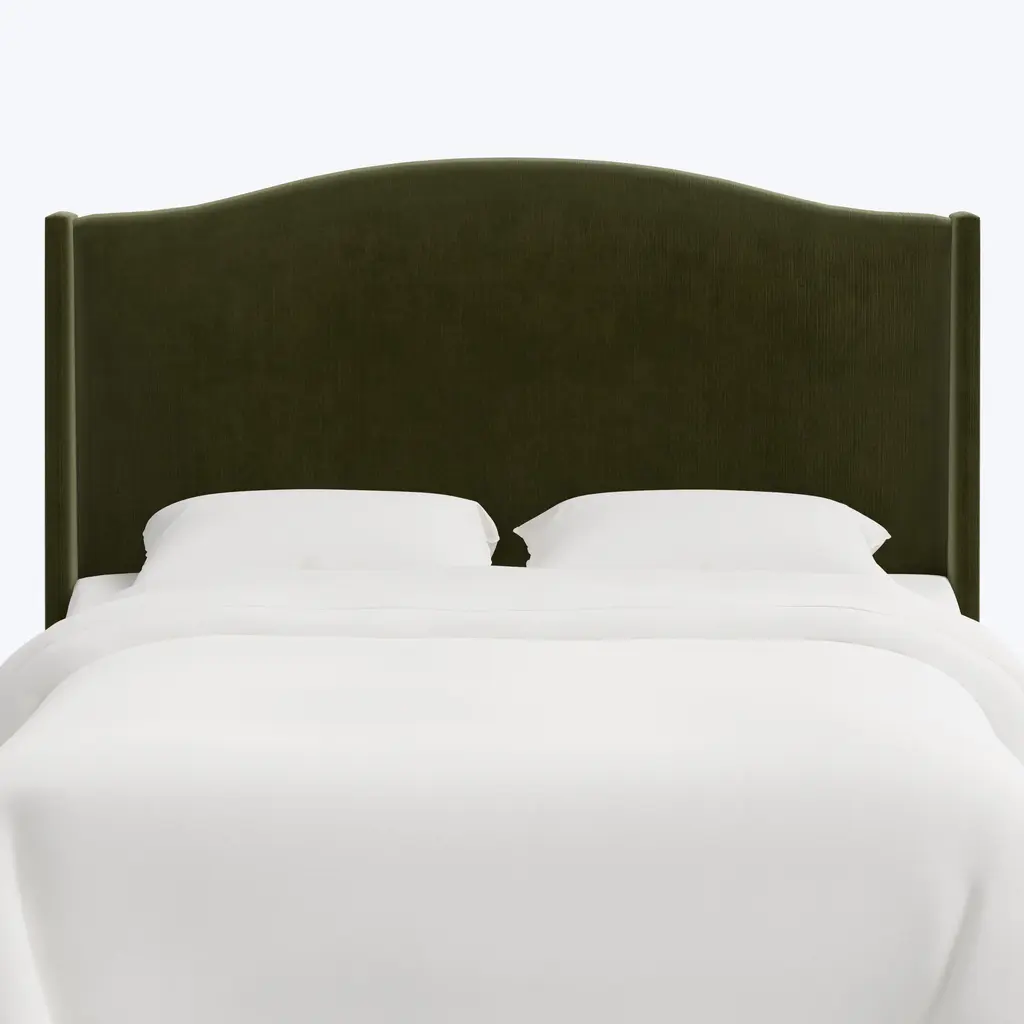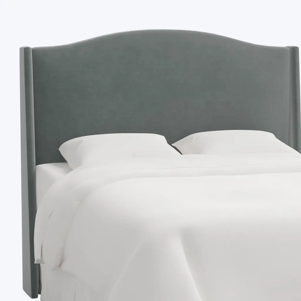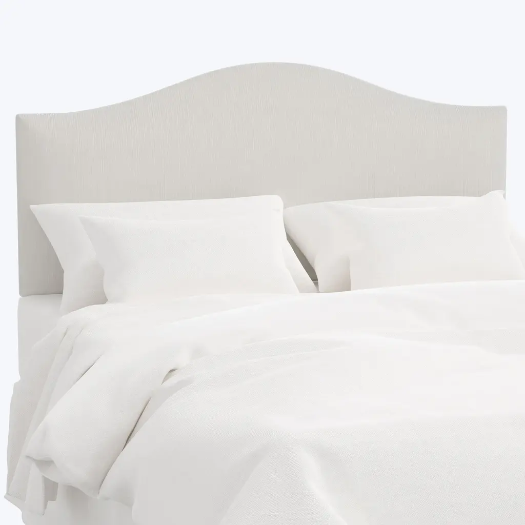 The Ellis Headboard reimagines the classic camelback silhouette, seamlessly blending traditional elegance with modern sophistication. Expertly handcrafted in Illinois, this headboard is upholstered in rich 100% cotton fabric, available in an assortment of fabrics and colors. With 45" W x 10" D x 56" H dimensions, it provides a bold yet graceful statement for your bedroom, offering the perfect balance of height and proportion to complement any standard bed frame. Its timeless design is elevated by the luxurious texture and quality craftsmanship, making it the ideal focal point for a restful sanctuary. Whether nestled in a serene, minimalist space or paired with bolder decor, the Ellis Headboard exudes an air of refined elegance.