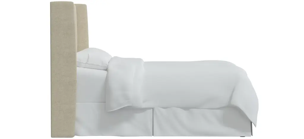 The Ellison square top twin headboard features a gentle curved wingback design alongside a plain front. These elements blend perefctly to lend a touch of style and create a piece that will be the center of your bedroom design. The made to order headboard matches up easily with any standard bed frame making assembly simple, and the inclusive transitional design makes it an easy addition to any bedroom space. Fully hand upholstered, the headboard is manufactured in Illinois and highlights a beautiful Woven fabric.