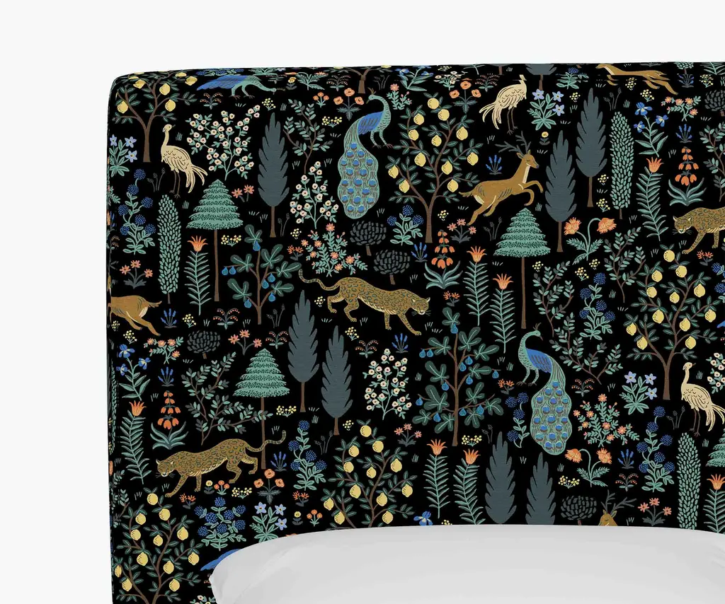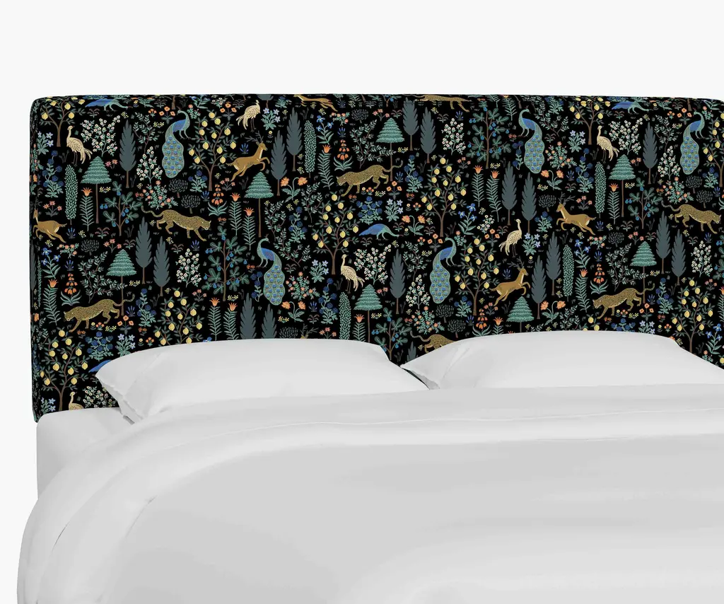 A headboard with clean, contemporary lines, designed to mount to your existing bed frame. Select from 17 illustrated fabrics for your made-to-order piece, crafted in Chicago by Cloth & Company.
