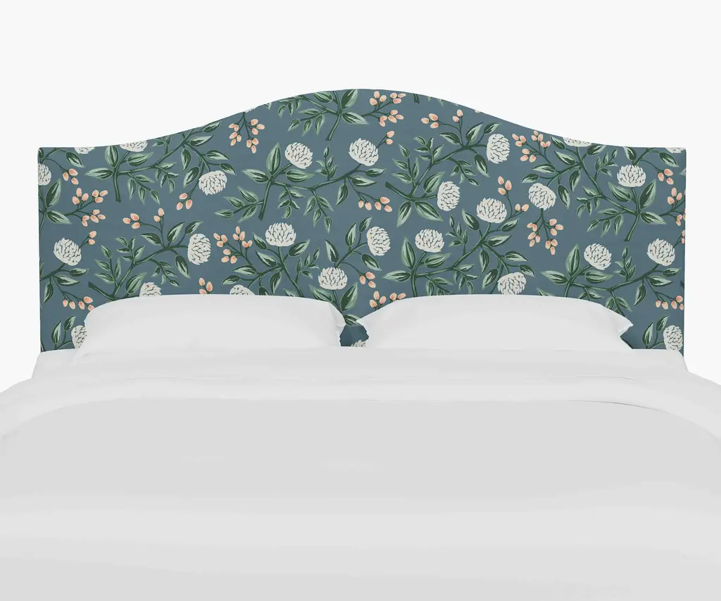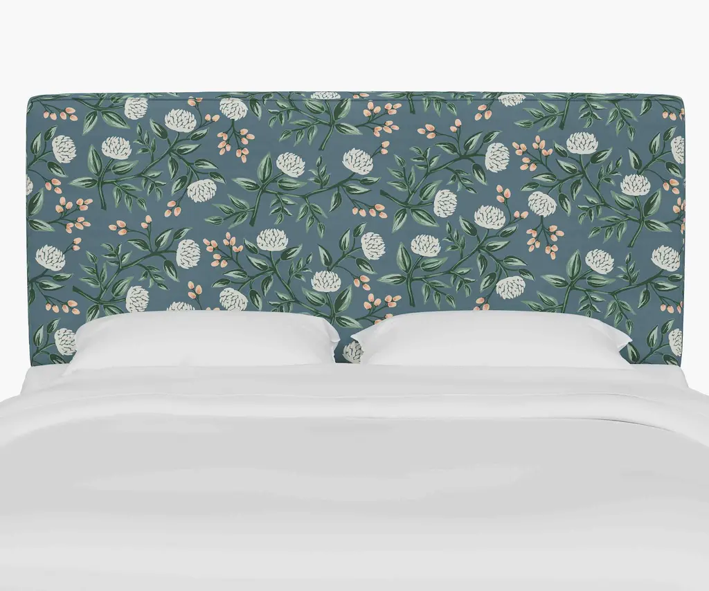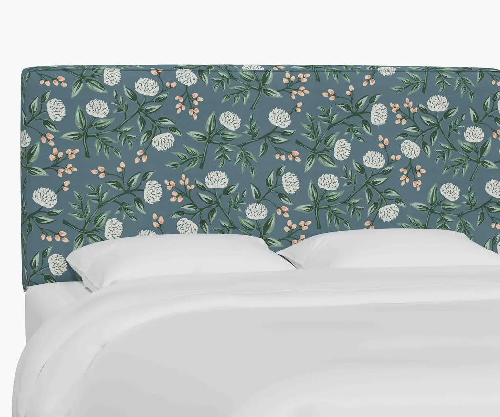 A headboard with clean, contemporary lines, designed to mount to your existing bed frame. Select from 17 illustrated fabrics for your made-to-order piece, crafted in Chicago by Cloth & Company.
