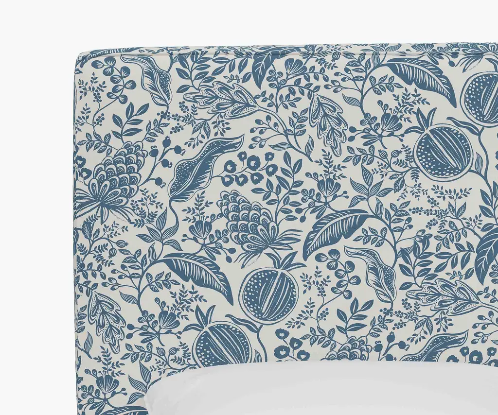 A headboard with clean, contemporary lines, designed to mount to your existing bed frame. Select from 17 illustrated fabrics for your made-to-order piece, crafted in Chicago by Cloth & Company.