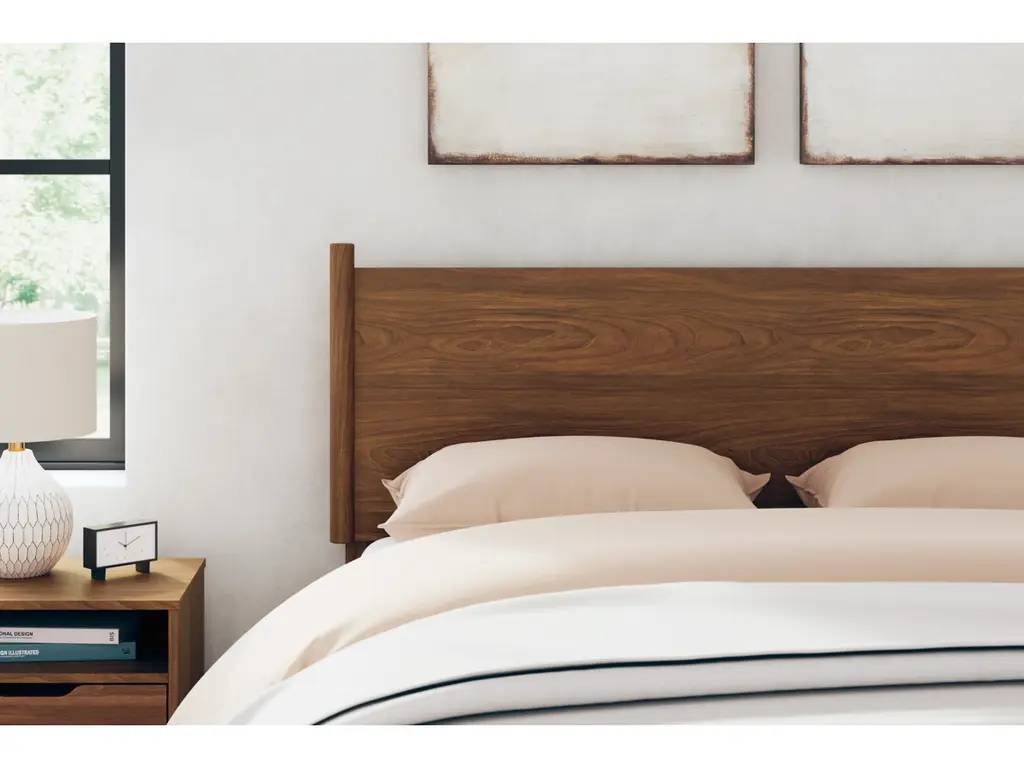 What do you get when you mix a minimalist profile with a warm finish? With sleek simplicity and a rich auburn hue, the Fordmont queen panel headboard delivers cool, contemporary style with a nod to mid-century modern design. Talk about completing your restful retreat with exceptional form.