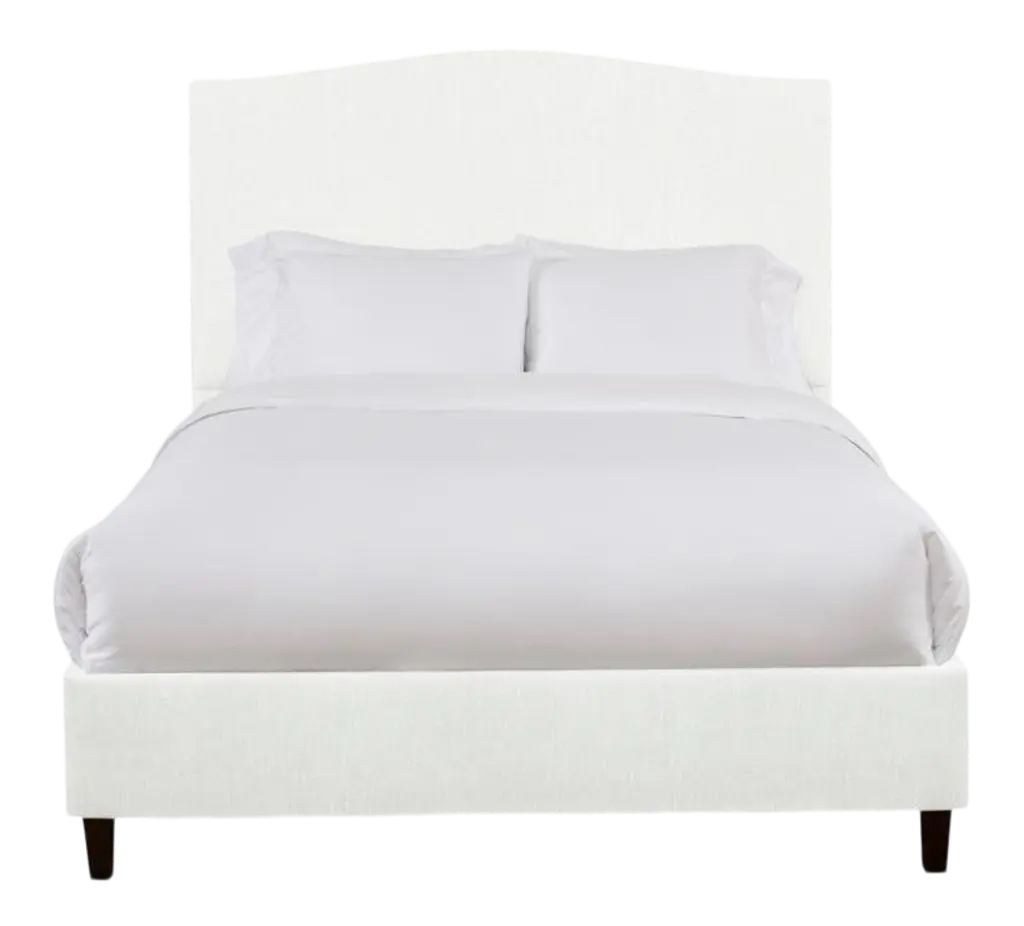 This listing is for the headboard only, and does not include the bedframe with the purchase. From Chairish's line of bespoke upholstery essentials, this iconic headboard is proudly made in America by an exceptional team of highly skilled artisans. Available in a colorful variety of quality linens and velvets, this timeless yet updated piece is a worthy focal point for any well-designed bedroom. Padded and tightly upholstered with muslin back and gimp trim. Headboards have 1" thick foam and padded (overlaid) with batting. Ships in one box and comes in 1 piece; some assembly required. Holes are not pre-drilled to allow fit with any bedframe. Spot clean. This item is made to order. Please allow up to 8 weeks for delivery.