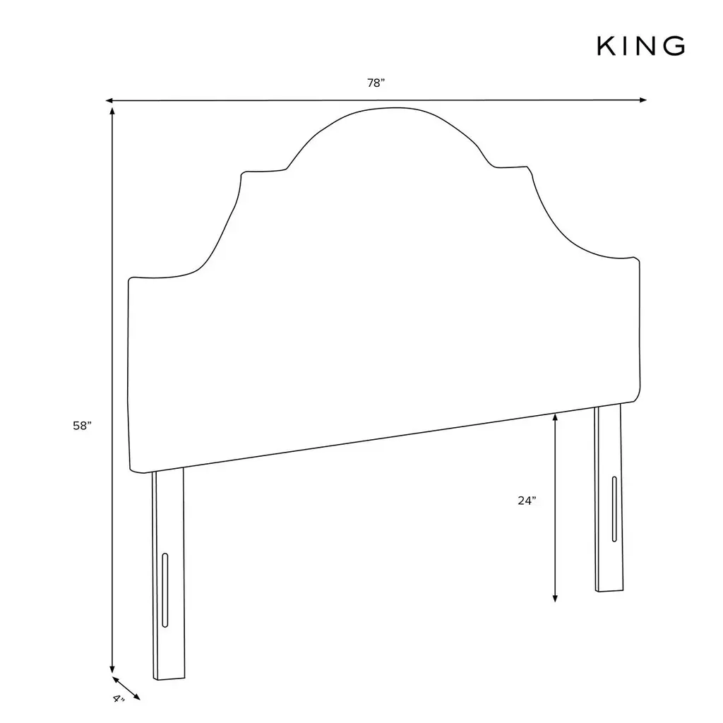 Traced in decorative nailheads, this elegant headboard boasts a seductive silhouette and neat linen-blend upholstery with blue and ivory stripes. Generous padding provides a soft, sturdy backdrop for reading and relaxing in bed. This easy-to-assemble headboard has metal legs which attach to any standard bed frame. Handcrafted in the USA.