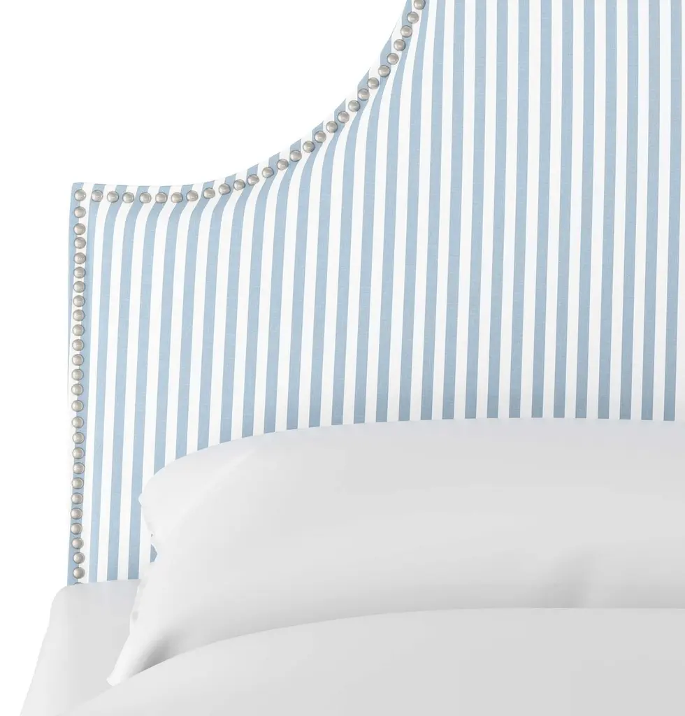 Hedren Arched Headboard, Blue/white Ticking Stripe