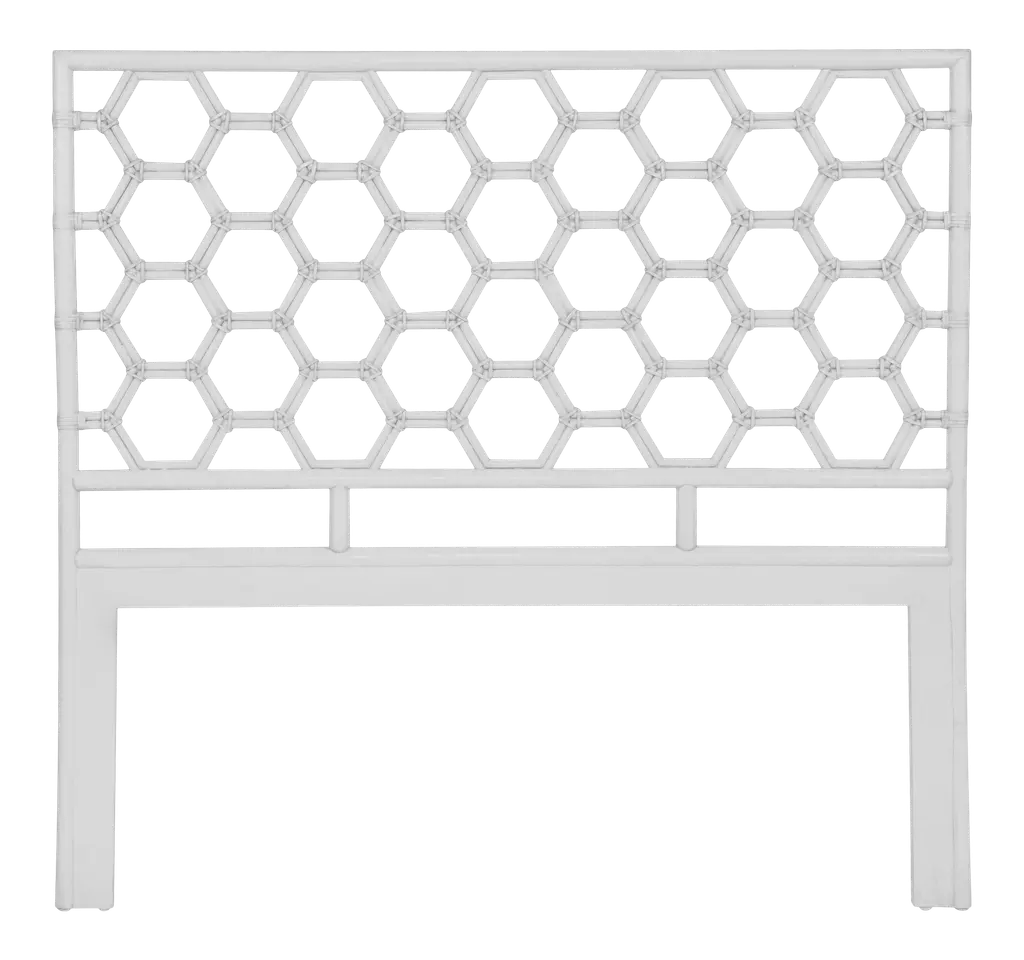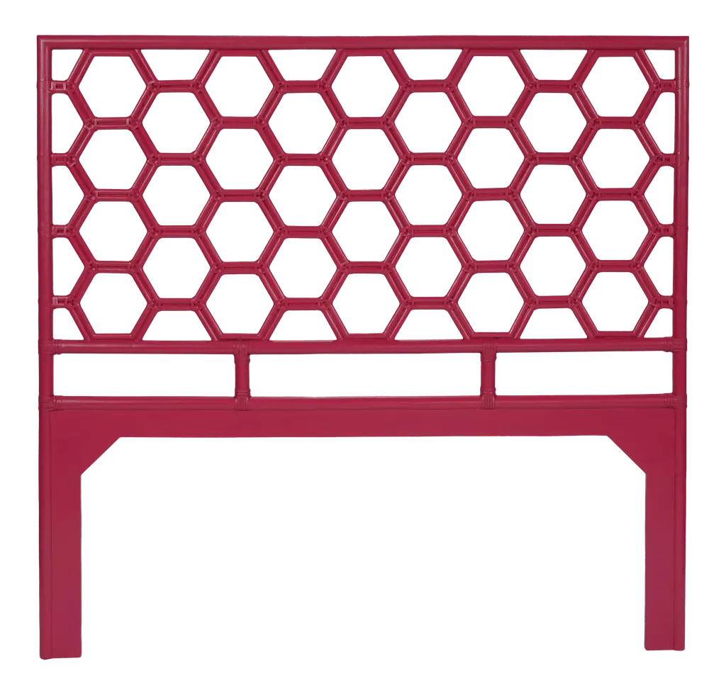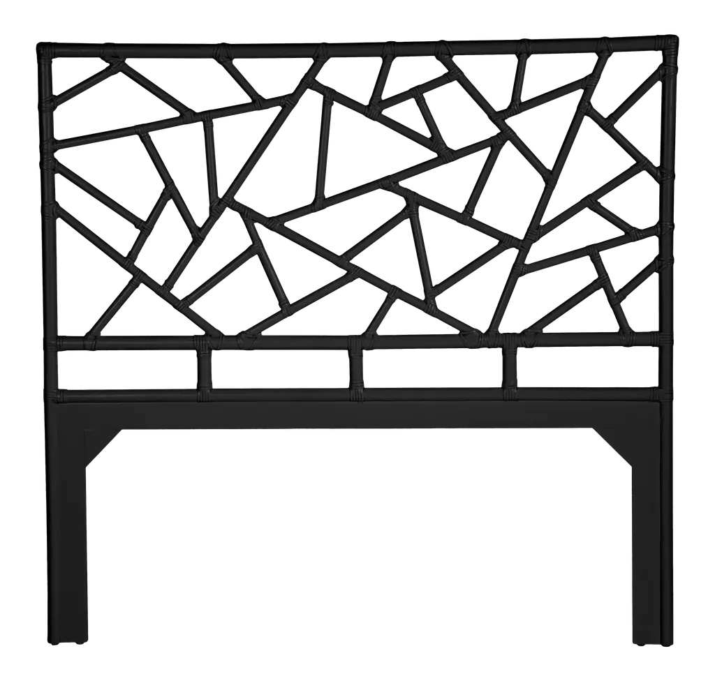 This headboard features classic Rattan design in a geometric pattern. Constructed of solid rattan and hand bound with rawhide bindings. This headboard can be attached to any standard bed frame or hung on the wall. Each headboard is hand finished in the USA and made to order, please allow time for delivery.