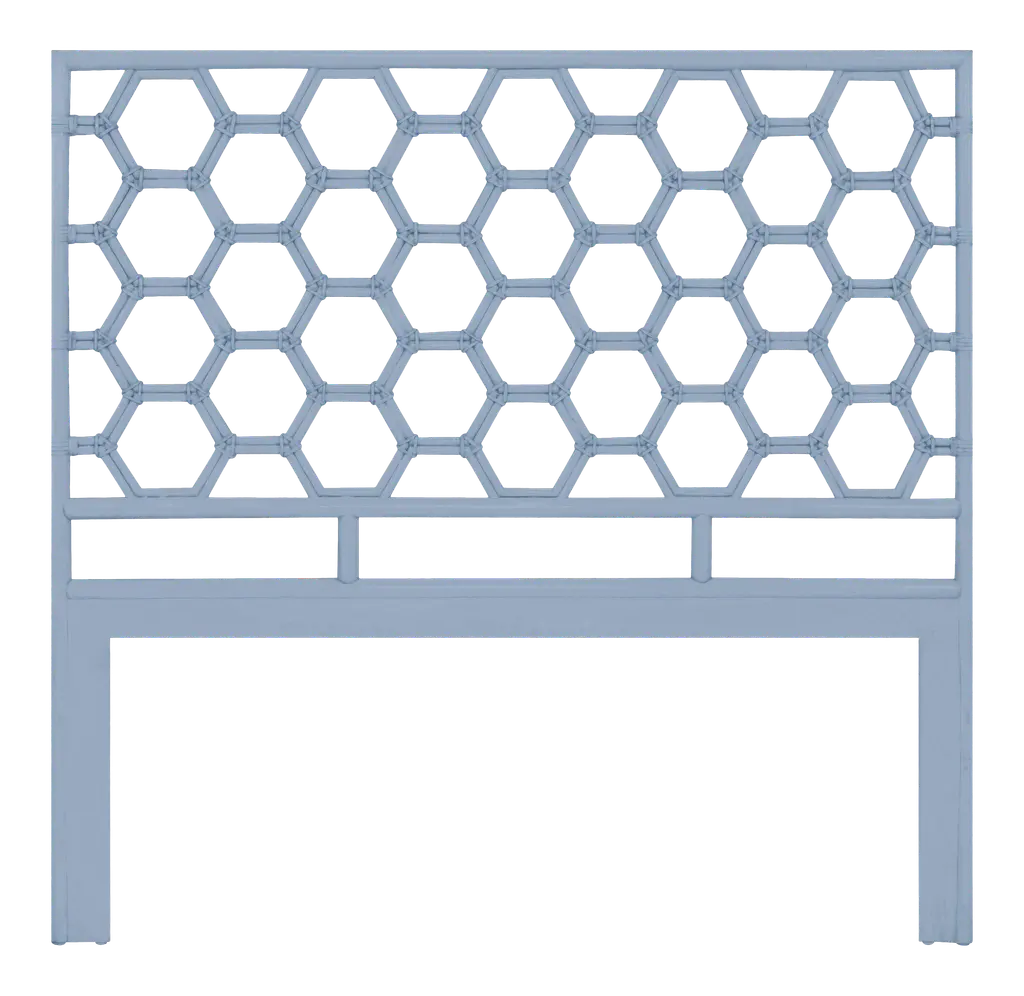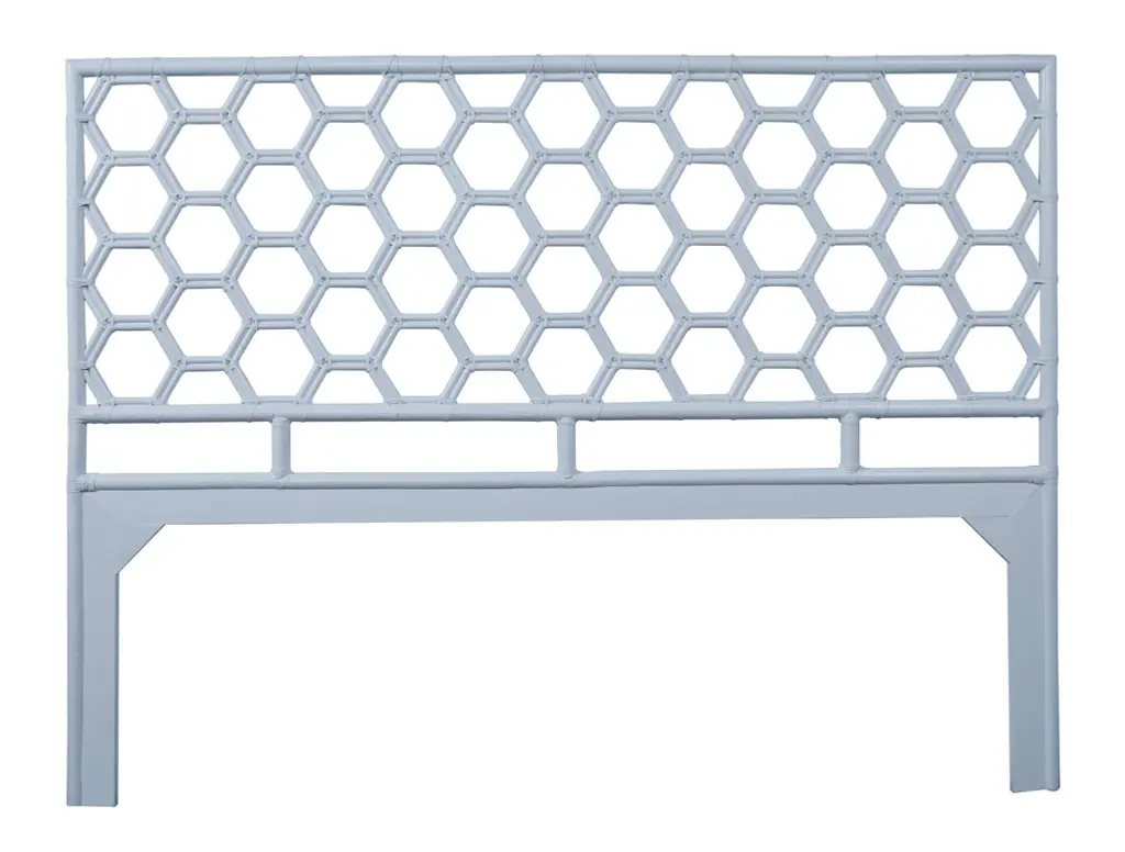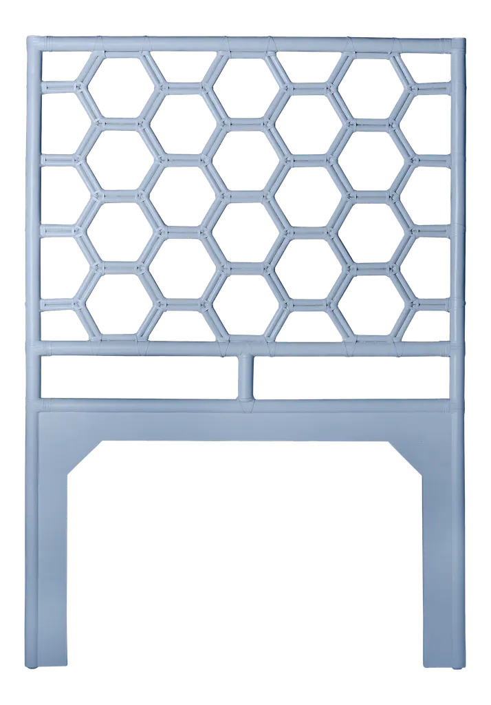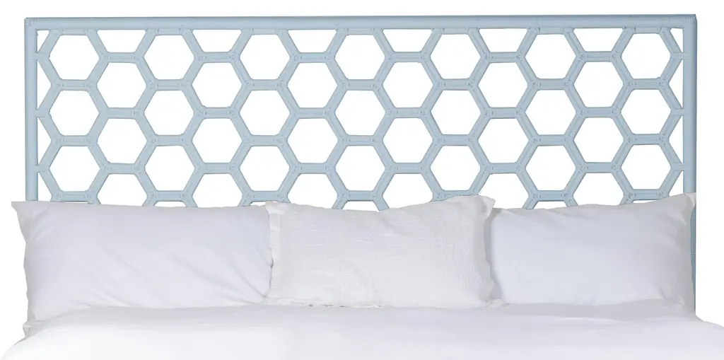 This headboard features classic Rattan design in a geometric pattern. Constructed of solid rattan and hand bound with rawhide bindings. This headboard can be attached to any standard bed frame or hung on the wall. Each headboard is hand finished in the USA and made to order, please allow time for delivery.