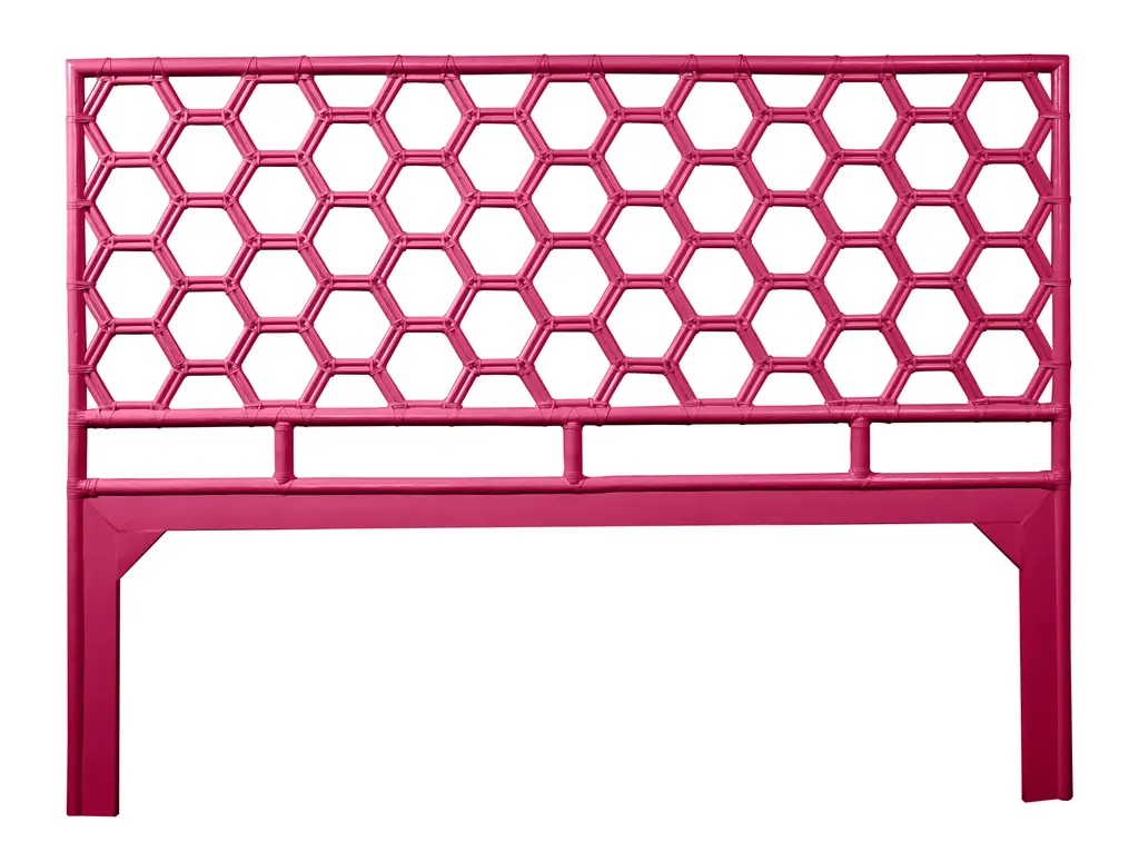 This headboard features classic Rattan design in a geometric pattern. Constructed of solid rattan and hand bound with rawhide bindings. This headboard can be attached to any standard bed frame or hung on the wall. Each headboard is hand finished in the USA and made to order, please allow time for delivery.
