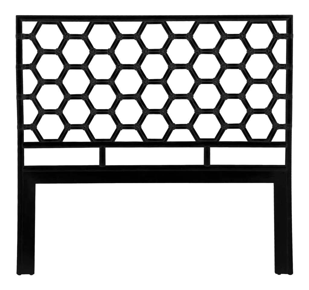 This headboard features classic Rattan design in a geometric pattern. Constructed of solid rattan and hand bound with rawhide bindings. This headboard can be attached to any standard bed frame or hung on the wall. Each headboard is hand finished in the USA and made to order, please allow time for delivery.