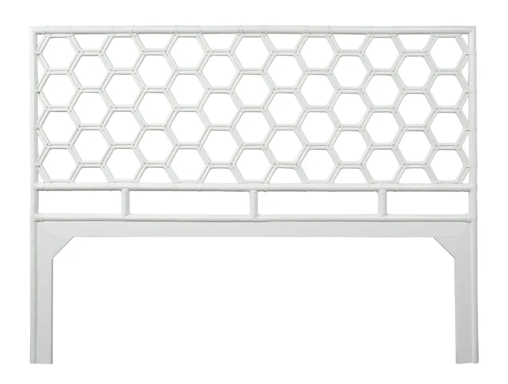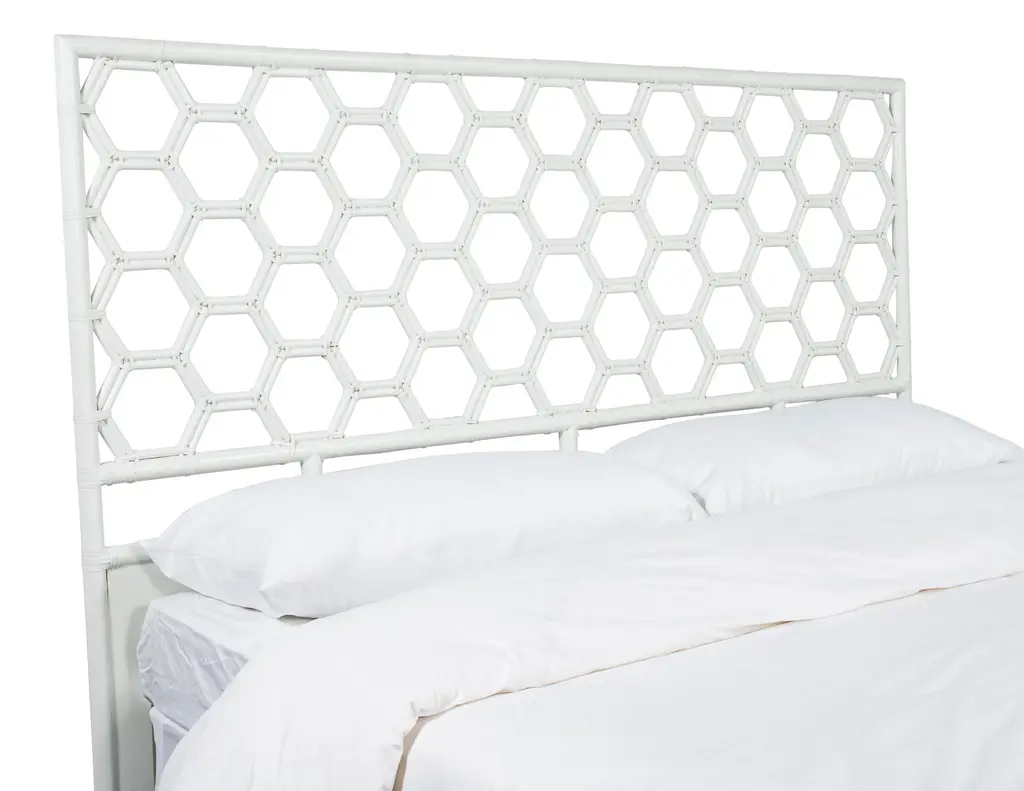 This headboard features classic Rattan design in a geometric pattern. Constructed of solid rattan and hand bound with rawhide bindings. This headboard can be attached to any standard bed frame or hung on the wall. Each headboard is hand finished in the USA and made to order, please allow time for delivery.