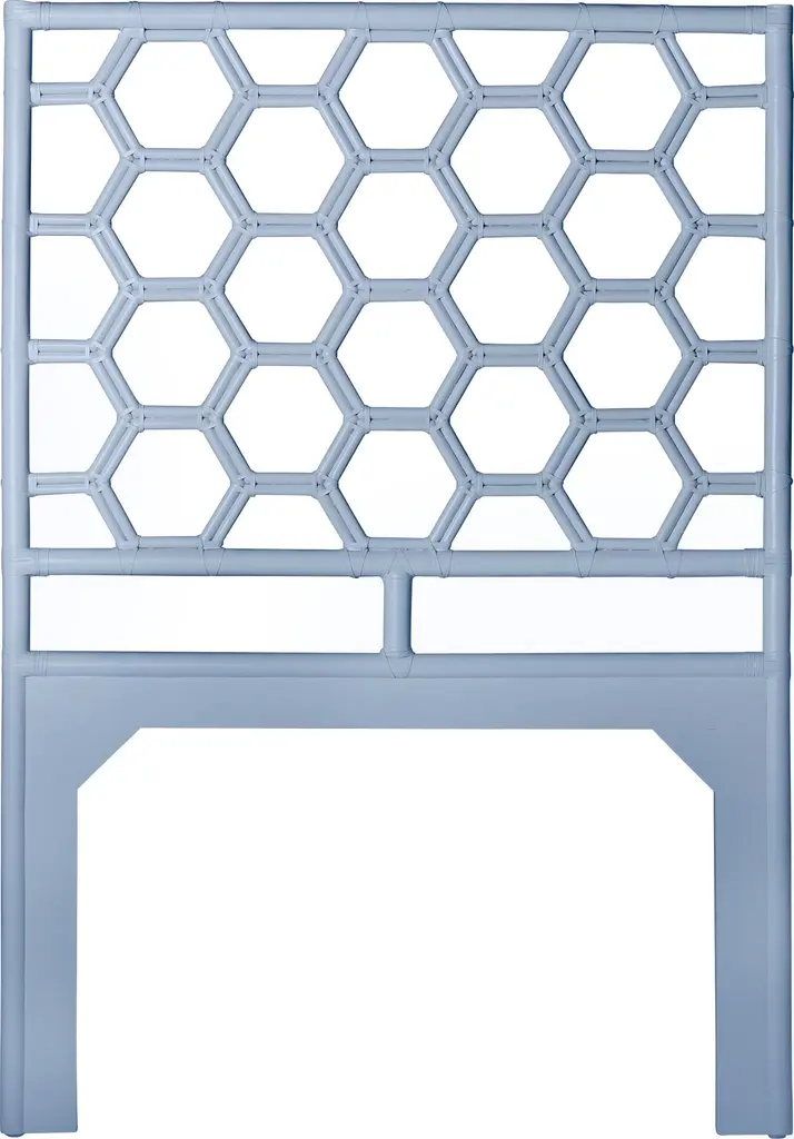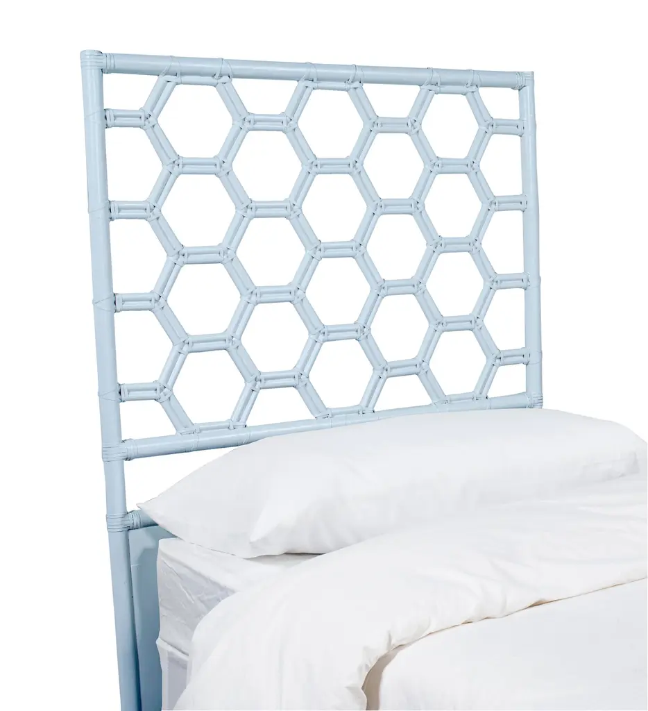 This headboard features classic Rattan design in a geometric pattern. Constructed of solid rattan and hand bound with rawhide bindings. This headboard can be attached to any standard bed frame or hung on the wall. Each headboard is hand finished in the USA and made to order, please allow time for delivery.