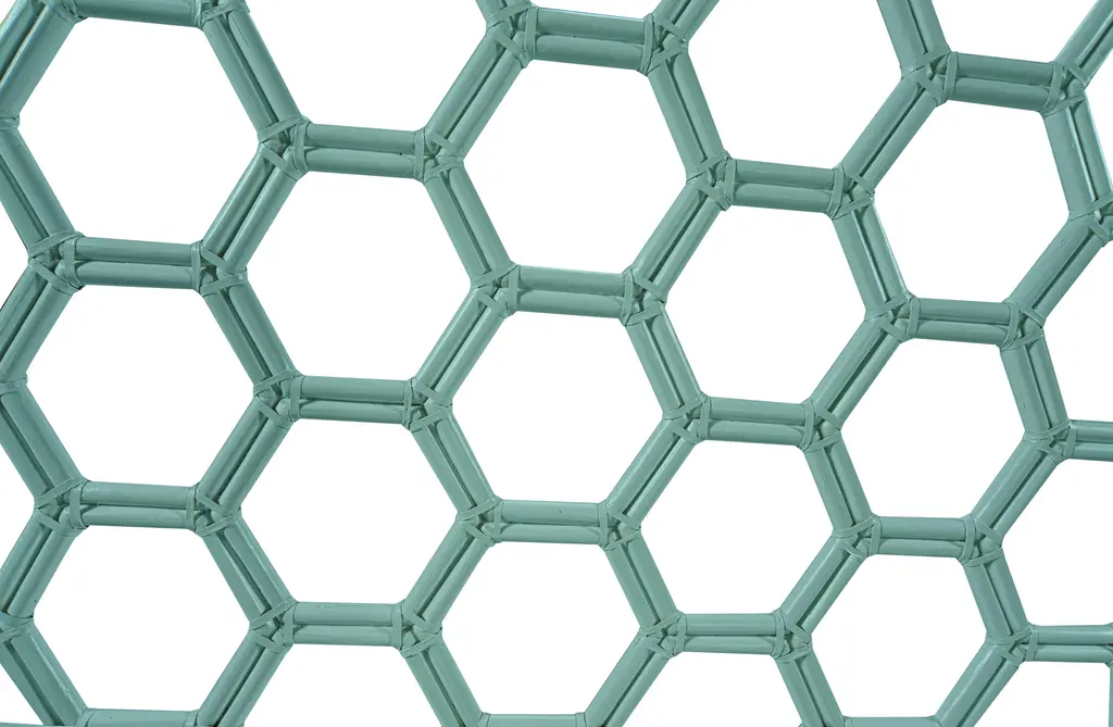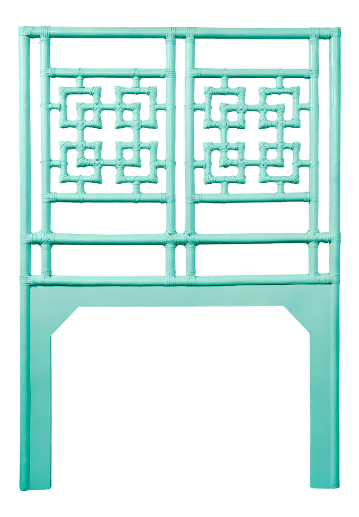 This headboard features classic Rattan design in a geometric pattern. Constructed of solid rattan and hand bound with rawhide bindings. This headboard can be attached to any standard bed frame or hung on the wall. Each headboard is hand finished in the USA and made to order, please allow time for delivery.