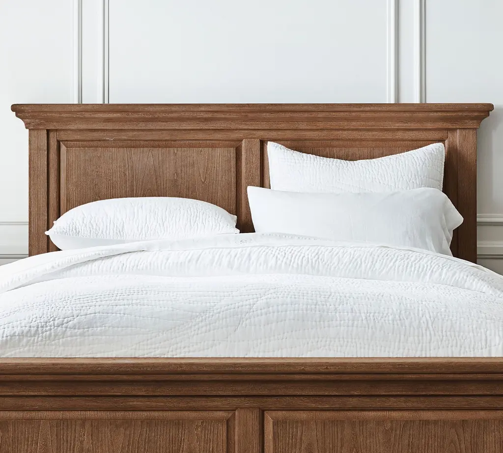 The strong, generous lines of our Hudson Headboard are enhanced by remarkable detailing like a paneled front and substantial molding at top. Pair it with other pieces in this collection for a coordinated look in the bedroom.