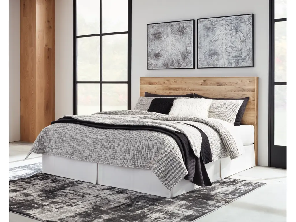 Inspired by natural beauty, refined to perfection. The Hyanna king panel headboard brings cozy outdoor vibes to your bedroom with its warm and inviting golden rustic finish. Simple and streamlined, this piece adds a subtle touch of authentic style to your space.